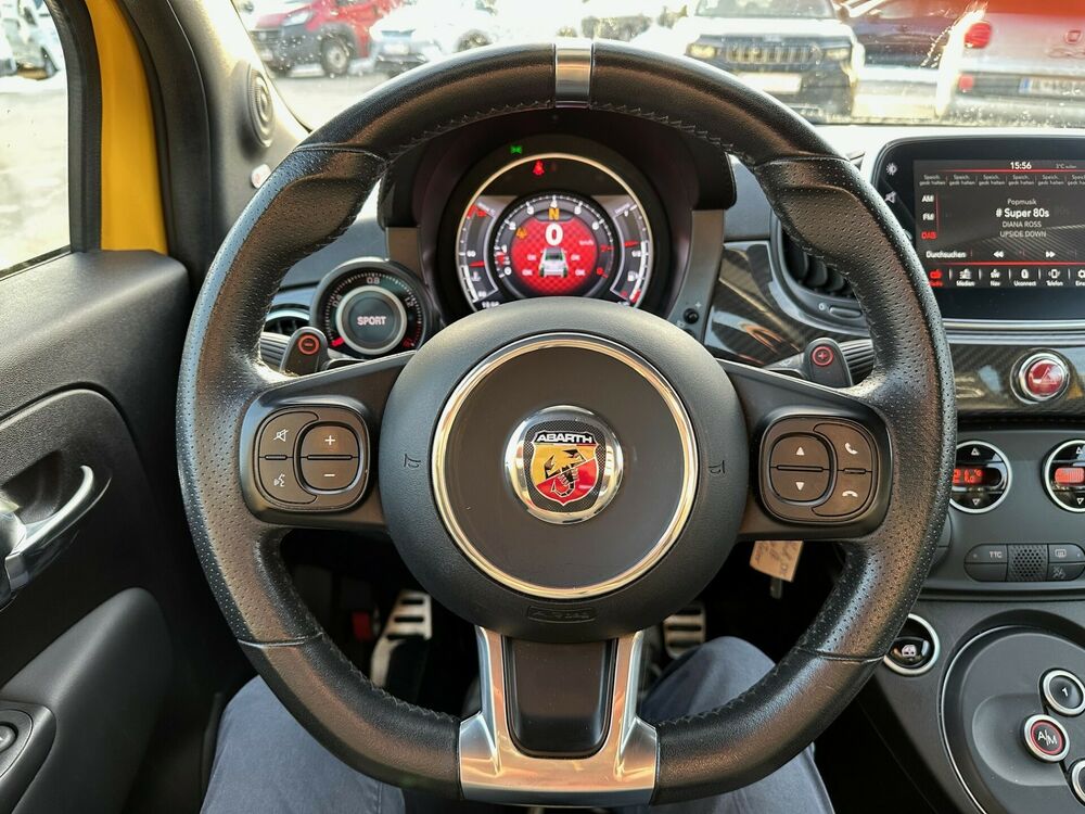 Adaptives Dämpfersystem an der Hinterachse (Frequenzy Selective Damping), Adaptives Dämpfersystem an der Vorderachse (Frequenzy Selective Damping), Antenne in Seitenfenster integriert, Elektr. Bremskraftverteilung, Ausstattungs-Paket: Aero-Kit, Schwellerabdeckung / -verkleidung, Dachspoiler (grosse Ausführung), Stoßfänger vorn, Lufteinlässe vergrößert, Stoßfänger mit Diffusoreinsatz hinten, Ausstattungs-Paket: Turismo, Tankdeckel Aluminium, Luftfilter: Sportluftfilter, Außentemperaturanzeige, Drehzahlmesser, Einstiegsleisten (Edelstahl), Elektron. Stabilitäts-Programm (ESP), Antriebs-Schlupfregelung (ASR), Elektron. Traktionskontrolle, Fahrassistenz-System: Berganfahrhilfe, Motor-Schleppmoment-Regulator (MSR), Fußmatten, Fußstütze Aluminium, Getränkehalter, Heckscheibe heizbar, USB-Schnittstelle, Mobile Online Dienste UConnect Live, Innenraumfilter: Pollenfilter, Kopfstützen hinten, Ladedruckanzeige, Audio-/Telefonbedienung am Lenkrad, Lenksäule (Lenkrad) höhenverstellbar, Lufteinlassgitter lackiert, Modellpflege, Multi-Funktions-Display, Multifunktionsanzeige mit Farbdisplay, Pedale Aluminium, Sport-Pedalerie, Positions-Memory für Beifahrersitz, Reifen-Reparaturkit, Schadstoffarm nach Abgasnorm Euro 6d-TEMP, Schaltpunktanzeige, Sitz vorn links höhenverstellbar, Sonnenblende rechts mit Spiegel, Sitzbezug / Polsterung: Leder, Steckdose (12V-Anschluß) in Mittelkonsole, Stoßfänger Wagenfarbe, Urban-Paket, Einparkhilfe elektronisch, Zentralverriegelung, Armaturenbrettfront Carbon, Scheinwerfer-Reinigungsanlage (SRA), Bremssättel Gelb lackiert, Kit ESTETICO Abarth (Design Set), Außenspiegel schwarz lackiert, Dekor-/Zierstreifen Matt mit Schriftzug Abarth (seitlich), Frontspoilerlippe schwarz, Sonderlackierung Modena-Gelb (Record), WindschottFahrzeugbeschreibung