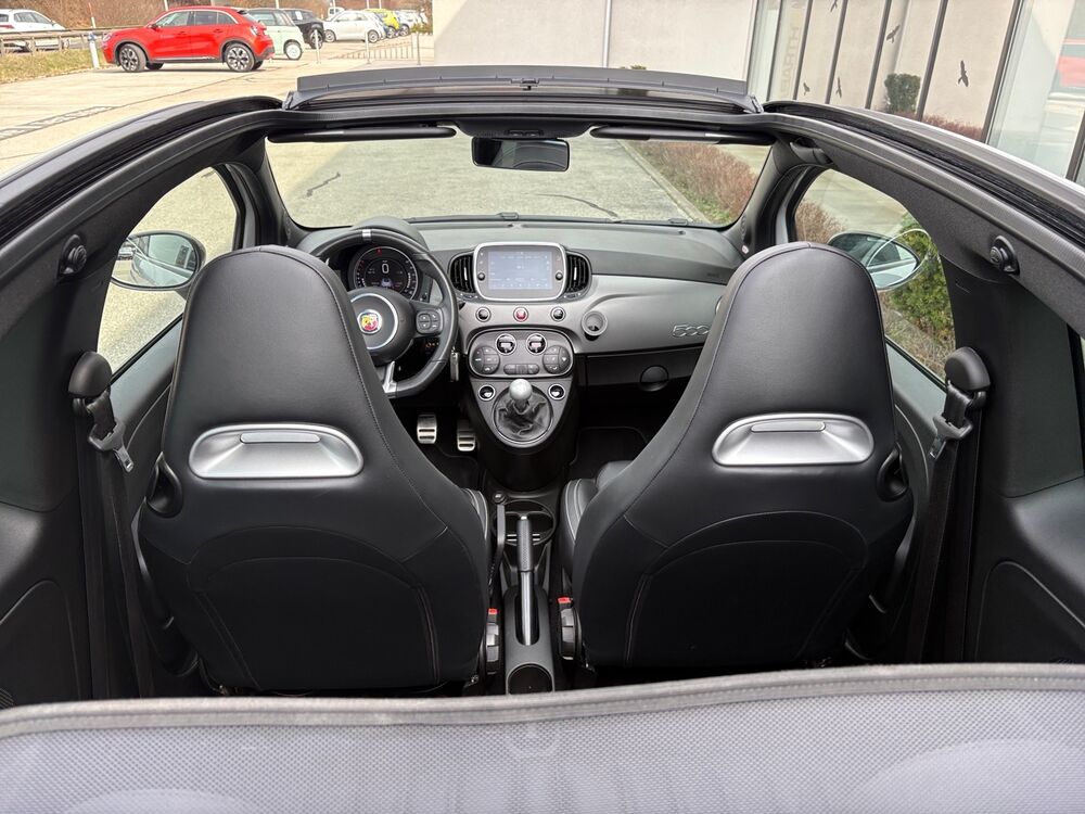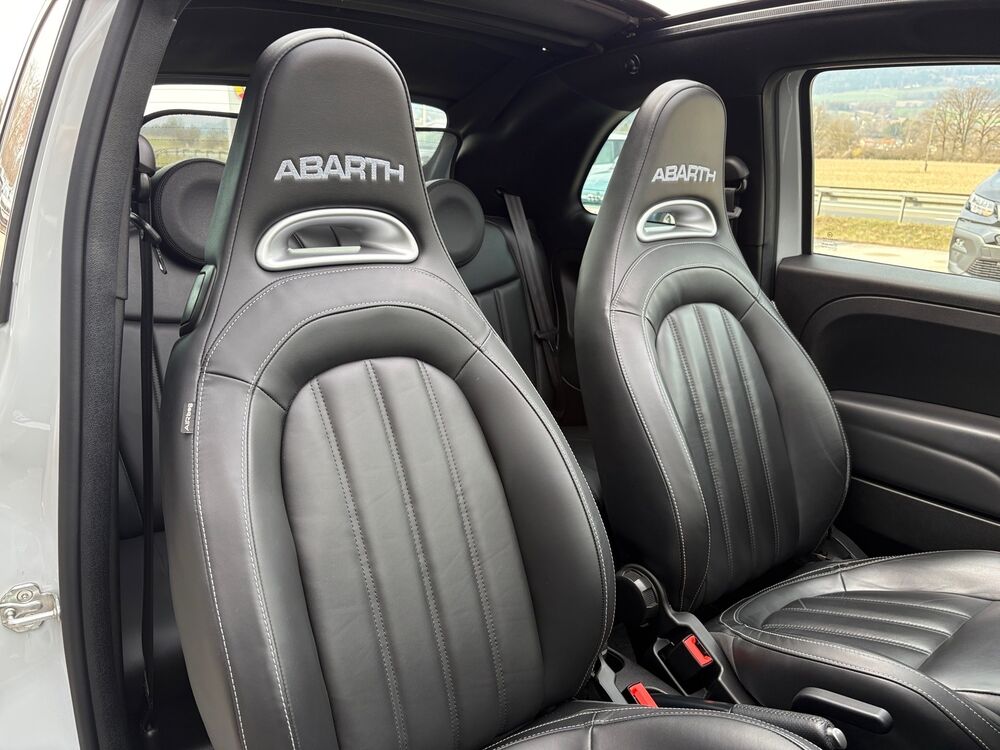 Adaptives Dämpfersystem an der Hinterachse (Frequenzy Selective Damping), Adaptives Dämpfersystem an der Vorderachse (Frequenzy Selective Damping), Antenne in Seitenfenster integriert, Elektr. Bremskraftverteilung, Ausstattungs-Paket: Aero-Kit, Schwellerabdeckung / -verkleidung, Dachspoiler (grosse Ausführung), Stoßfänger vorn, Lufteinlässe vergrößert, Stoßfänger mit Diffusoreinsatz hinten, Ausstattungs-Paket: Turismo, Tankdeckel Aluminium, Luftfilter: Sportluftfilter, Außentemperaturanzeige, Drehzahlmesser, Einstiegsleisten (Edelstahl), Elektron. Stabilitäts-Programm (ESP), Antriebs-Schlupfregelung (ASR), Elektron. Traktionskontrolle, Fahrassistenz-System: Berganfahrhilfe, Motor-Schleppmoment-Regulator (MSR), Fußmatten, Fußstütze Aluminium, Getränkehalter, Heckscheibe heizbar, USB-Schnittstelle, Mobile Online Dienste UConnect Live, Innenausstattung: Einlagen Armaturenbrett, lackiert, Innenraumfilter: Pollenfilter, Kopfstützen hinten, Ladedruckanzeige, Lenksäule (Lenkrad) höhenverstellbar, Lufteinlassgitter lackiert, Modellpflege, Multi-Funktions-Display, Multifunktionsanzeige mit Farbdisplay, Pedale Aluminium, Sport-Pedalerie, Positions-Memory für Beifahrersitz, Reifen-Reparaturkit, Schadstoffarm nach Abgasnorm Euro 6d-TEMP, Schalt-/Wählhebelgriff Aluminium, Schaltpunktanzeige, Sitz vorn links höhenverstellbar, Sonnenblende rechts mit Spiegel, Sitzbezug / Polsterung: Leder, Steckdose (12V-Anschluß) in Mittelkonsole, Stoßfänger Wagenfarbe, Urban-Paket, Einparkhilfe elektronisch, Zentralverriegelung, Scheinwerfer-Reinigungsanlage (SRA), Bremssättel schwarz lackiert, Kit ESTETICO Abarth (Design Set), Außenspiegel schwarz lackiert, Dekor-/Zierstreifen Matt mit Schriftzug Abarth (seitlich), Frontspoilerlippe schwarz, Sonderlackierung Grigio Campovolo.