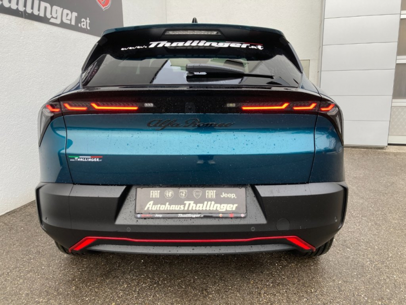 ALFA ROMEO JUNIOR ELETTRICA SPECIALE!! VORFÜHRWAGEN!!AUSSTATTUNG: 18’’ Leichtmetallfelgen FORI für IBRIDA, 18’’ Leichtmetallfelgen PETALI für ELETTRICA, Body-Kit Diabolik Matt-Finish, rote Außendetails, Scudetto (V-Grill) Progresso, abgedunkelte Scheiben hinten und Heck, elektrisch verstellbare Außenspiegel, Premium-Sitze SPIGA, 6-fach elektrisch verstellbarer Fahrersitz mit Massagefunktion, 6-fach manuell verstellbarer Beifahrersitz, beheizbare Vordersitze, Lederlenkrad, Fußmatten Velour, Ambiente-Beleuchtung in 8 Farben, Einstiegsleisten aus Aluminium, Sportpedale aus Aluminium, Ladebodenhöhe in 3 Stufen verstellbar, dritte Kopfstütze hinten, LED-Lampen mit Touchfunktion vorne und hinten, kein manueller Tag-/Nacht-Rückspiegel, Geschwindigkeits-, Spurhalte- und Stauassistent, Navigation (EV-Routing bei Elettrica), zusätzlicher USB-Anschluss 2,5A Typ C hinten, Hi-Fi Audio-System mit 6 Lautsprechern, Verkehrszeicheninformation (Vernetzung Frontkamera mit Navigationskarten), elektrische Heckklappe mit Fußsensor, 180° Rückfahrkamera, Keyless Entry.