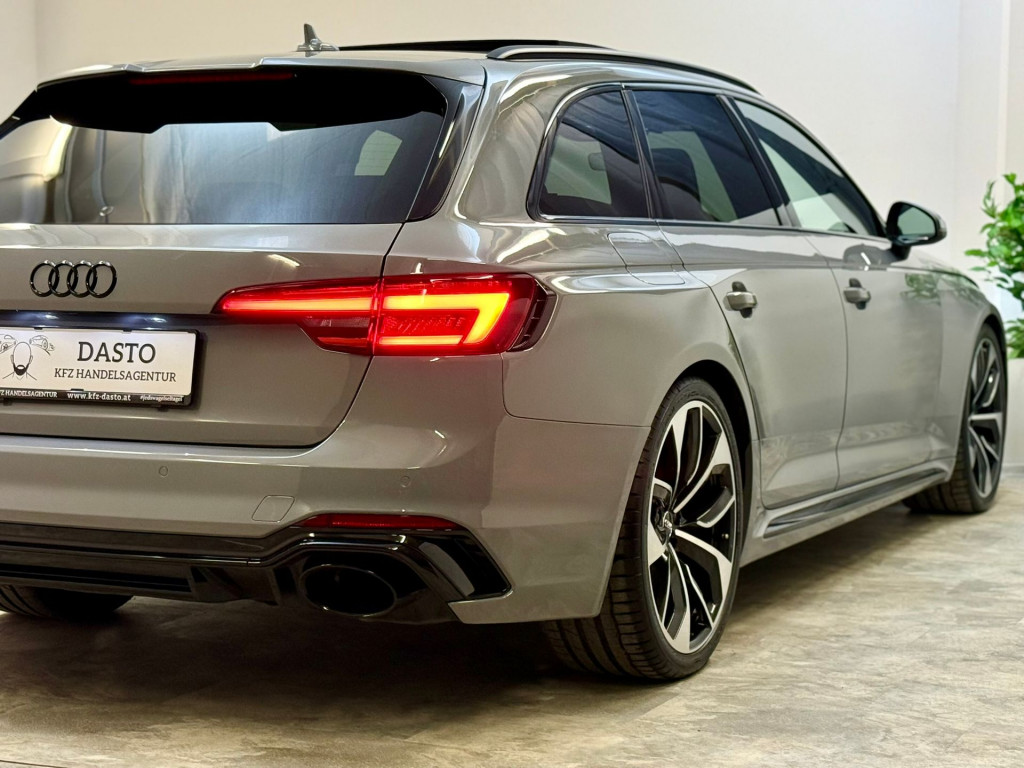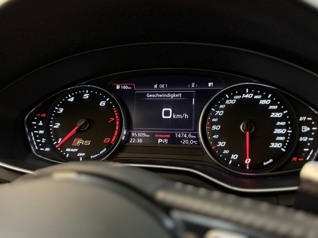 Der Audi RS4 B9 in NARDOGRAU besticht durch seine Kombination aus dem starkem 2.9L V6 Bi-Turbo Motor mit ca. 450PS und 600Nm Drehmoment, permanente Quattro-Allradtechnik, schnelle 8-Gang-Automatik, exzellenter Fahrdynamik inklusive sportlich abgestimmter Ausstattung, geräumigem Avant-karosseriedesign sowie hochwertiger Innenausstattung im typischen RS-Designelementen.