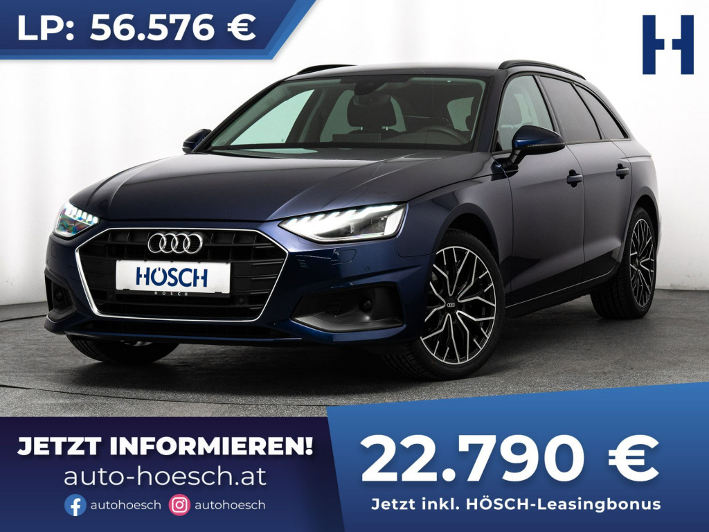 Vollgepackt mit Technik, unser Audi A4 Avant 35 TDI Aut. mit umfangreicher Ausstattung zum HÖSCH-Vorteilspreis.Preis inkl. HÖSCH Leasingbonus: 22.790 €