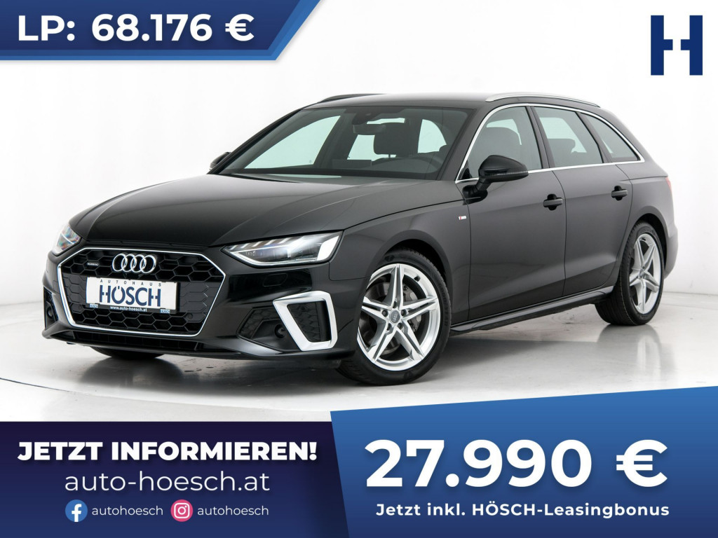 Sportlicher Audi A4 Avant 40 TDI quattro S Line Aut. mit umfangreicher Ausstattung zum HÖSCH-Vorteilspreis.Preis inkl. Hösch Leasingbonus: 27.990 €