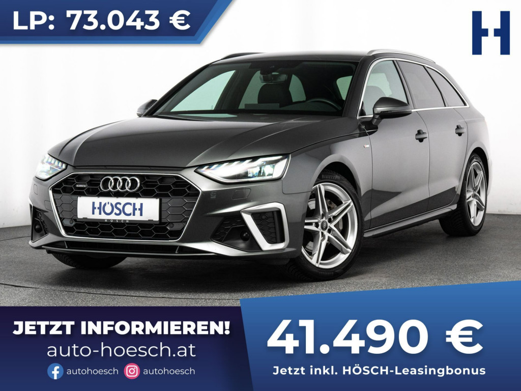 Sportlicher Jungwagen Audi A4 Avant 40 TDI quattro S Line Aut. mit umfangreicher Ausstattung zum HÖSCH-Vorteilspreis.Preis inkl. Hösch Leasingbonus: 41.490 € (-43%)