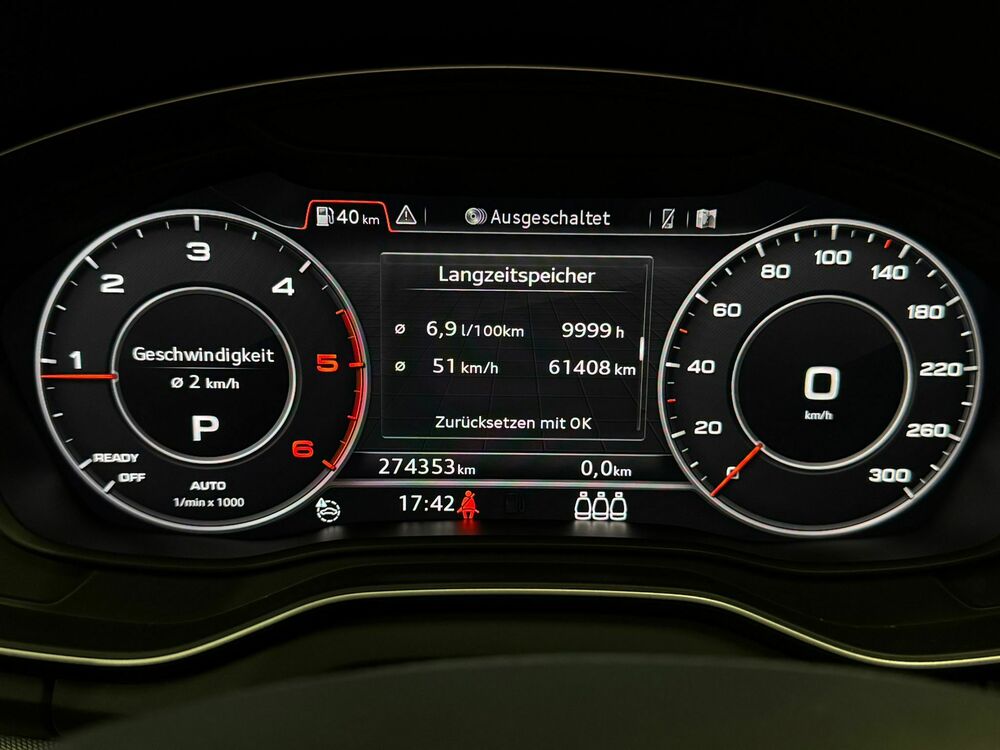 Außenspiegel asphärisch, links, Außenspiegel asphärisch, rechts, Außenspiegel konvex, links, Außenspiegel konvex, rechts, Außenspiegel Wagenfarbe, Blinkleuchten LED in Außenspiegel integriert, Dynamik-Fahrwerk, Einstiegsleisten mit Aluminiumeinlage, Frontscheibe Akustikglas, Fußmatten Velours, Gepäckraum-Abtrennung (Netz), Glanz-Paket, Innenausstattung: Dekoreinlagen Aluminium, Kindersicherung, manuell, Leuchtweitenregelung, Licht-Paket, Mittelarmlehne hinten mit Fach, Nichtraucher-Paket, Parkbremse elektro-mechanisch, Radstand 2819 mm, Reifen-Reparaturkit, Schadstoffarm nach Abgasnorm Euro 6, Scheibenwaschdüsen heizbar, Wagenheber, Wendematte Gepäckraum (variabel), Ablage- und Gepäckraum-Paket, Assistenz-Paket Stadt, Fahrassistenz-System: Insassen-Schutzsystem (Audi pre sense basic), Fahrassistenz-System: Querverkehrs-Assistent Heck, Fahrassistenz-System: Spurwechselassistent (Side Assist) inkl. Audi pre sense rear, Audi connect (Internetbasierende Dienste), Audi Smartphone Interface, Außenspiegel mit Bordsteinautomatik, rechts, Dachhimmel Stoff, schwarz, Fahrassistenz-System: Anfahr-Assistent (hold assist), Frontkamera (Scheibe), Faltrad 6,5x17 (Notrad) mit Kompressor, Frontscheibe heizbar, Harnstofftank (SCR): 24 Ltr., Lendenwirbelstützen vorn, elektr. verstellbar, Leuchtweitenregelung automatisch, Abbiege- und Allwetterlicht, Scheinwerfer-Reinigungsanlage (SRA), Sitzbezug / Polsterung: Kunstleder / LederFahrzeugbeschreibung