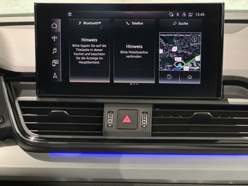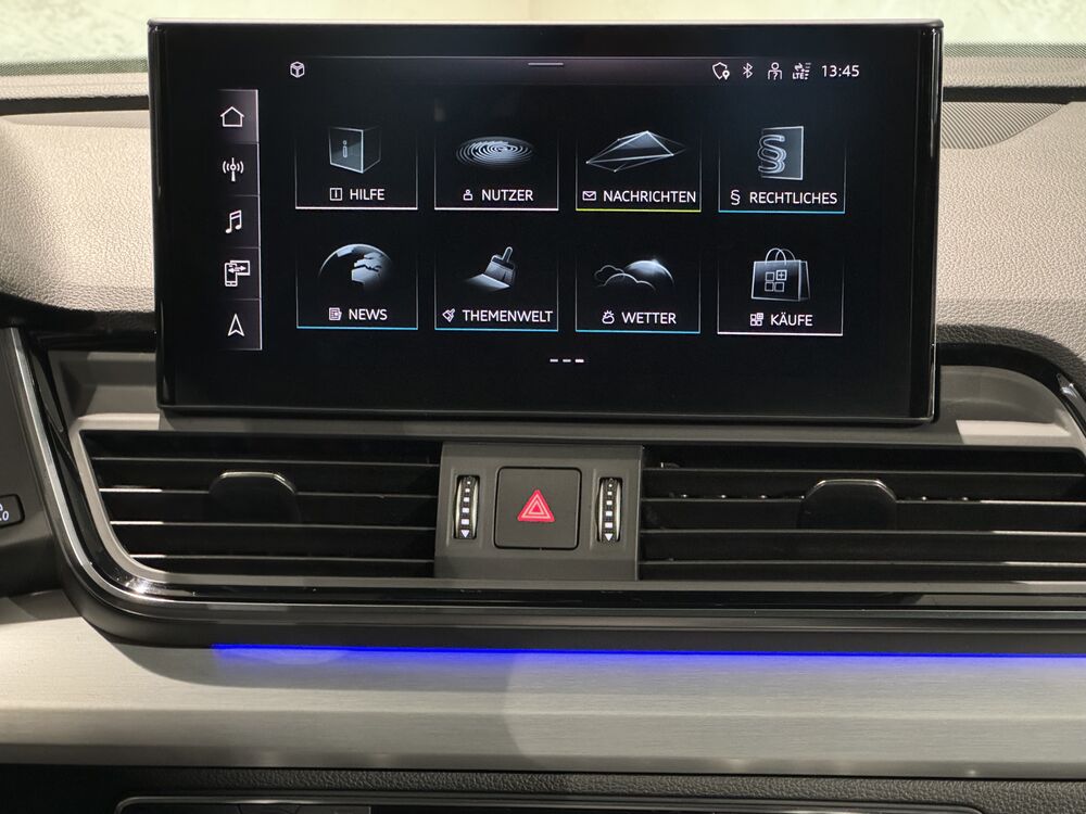 Ablage- und Gepäckraum-Paket, Akustikglas Türscheiben vorn, Ambiente-Beleuchtung (Multicolor-LED), Anhängerkupplung (Kugelkopf schwenkbar), Assistenz-Paket Stadt mit Assistenz-Paket Parken, Fahrassistenz-System: Parklenkassistent, Einparkhilfe vorn und hinten, optisch (APS Plus), Kamerasystem Umgebungsansicht (Top View), Fahrassistenz-System: Spurverlassenswarnung, Assistenz-Paket Tour, Fahrassistenz-System: Verkehrszeichenerkennung, Fahrassistenz-System: Autom. Distanzregelung (Adaptive Cruise Control) inkl., Audi pre sense front, Fahrassistenz-System: Stauassistent, Fahrassistenz-System: Prädiktiver Effizienz-Assistent, Fahrassistenz-System: Ausweich-Assistent, Fahrassistenz-System: Abbiege-Assistent links, Fahrassistenz-System: Spurhalteassistent (active lane assist),