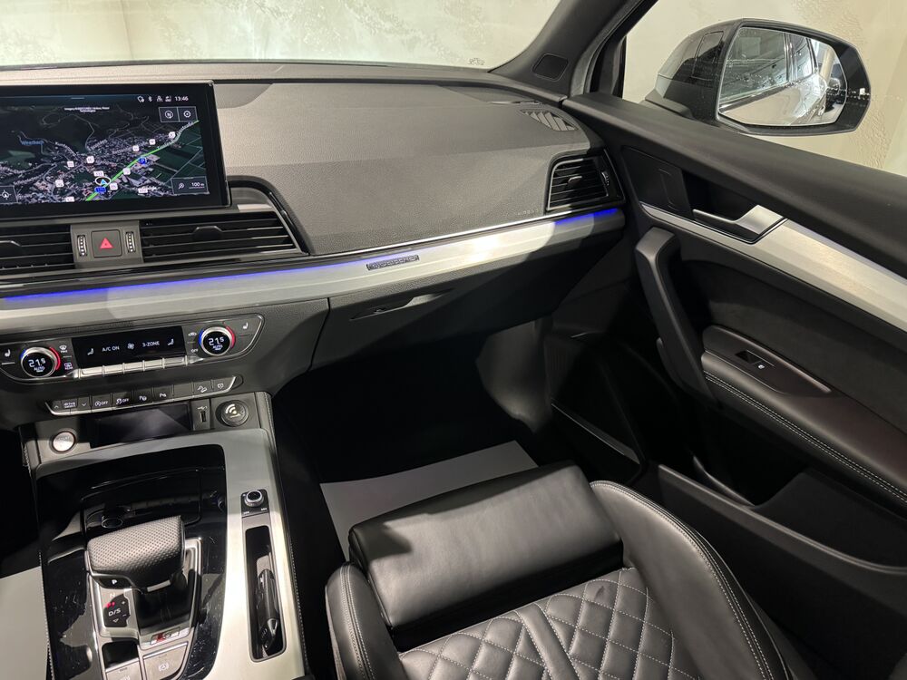 Bluetooth-Freisprecheinrichtung mit Spracherkennung (Audi Phone Box), Bremssättel Rot lackiert, Dynamiklenkung, Fahrassistenz-System: Anfahr-Assistent (hold assist), Frontscheibe Klimakomfort / Akustikglas heizbar, Harnstofftank (SCR): 24 Ltr., Head-up-Display, Innenausstattung: Interieurelemente in Kunstleder, Kombiinstrument digital (virtual cockpit plus), Komfort-Klimaautomatik 3-Zonen, LM-Felgen 8, 5x21 (5-V-Speiche-Offset, Anthrazit-Schwarz glanzgedreht), Matrix-LED-Scheinwerfer mit Dynamischer Lichtinszenierung und OLED Heckleuchten, Matrix Heckleuchten OLED mit Schlusslichtsignatur 1, Scheinwerfer-Reinigungsanlage (SRA), Multifunktionskamera, Metallic-Lackierung, Multi-Media-Interface MMI Navigation Plus mit MMI Touch, Optik-Paket schwarz, Außenspiegel schwarz, Dachreling schwarz, Panoramadach vorn elektrisch hinten fest, Rücksitzlehne geteilt/klappbar, verschiebbar (40:20:40), Sitzbezug / Polsterung: Leder Feinnappa mit Logo-Prägung in Vordersitzlehnen, Sitze vorn elektr. verstellbar (links mit Memory), Außenspiegel elektr. verstell-, heiz- und anklappbar, mit Abblendautomatik und Memory, Lendenwirbelstützen vorn, pneumatisch verstellbar, mit Massagefunktion, Sound-System Bang & Olufsen, Sport-Fahrwerk (adaptive air suspension - sport), Verglasung hinten abgedunkelt (Privacyverglasung), uvm....