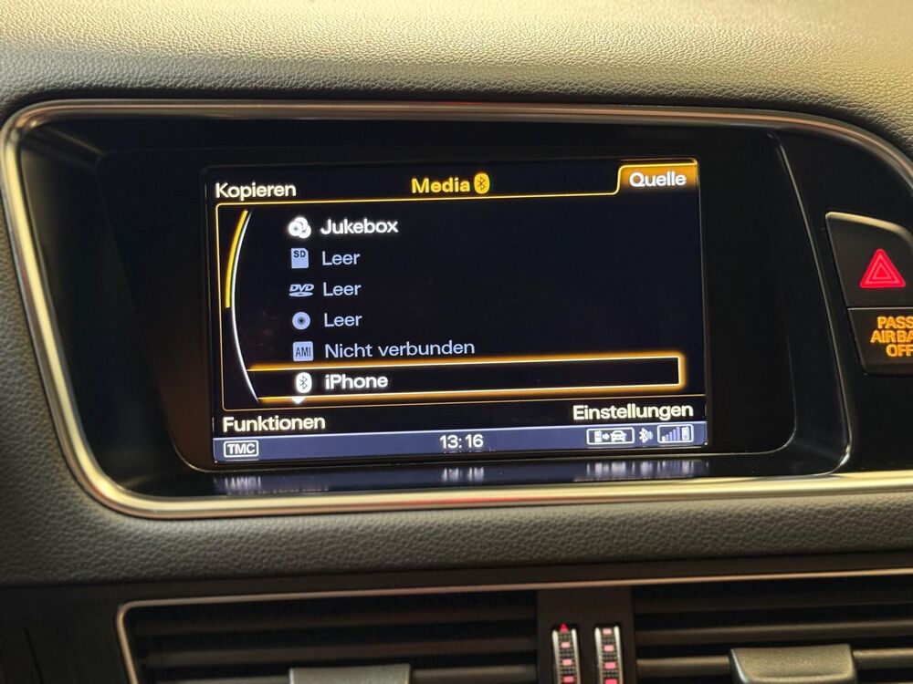 Außenspiegel asphärisch, links, Außenspiegel asphärisch, rechts, Blinkleuchten LED in Außenspiegel integriert, Bremsanlage mit Rekuperationssystem, Dachhimmel Stoff, schwarz, Einstiegsleisten mit Aluminiumeinlage und Schriftzug, Gepäckraum-Abtrennung (Netz), Glanz-Paket, Lendenwirbelstützen vorn, elektr. verstellbar, Licht-Paket, Modellpflege, Parkbremse elektro-mechanisch, Radstand 2813 mm, Reifen-Reparaturkit, Schadstoffarm nach Abgasnorm Euro 5, Scheibenwaschdüsen heizbar, Voll-Lackierung, Ablage-Paket, Audi Drive Select, Audi music interface, Außenspiegel Wagenfarbe, CD-Wechsler im Handschuhfach, Doppel-Sonnenblenden (verschiebbar, ausziehbar), Dynamiklenkung, Fahrassistenz-System: Spurwechselassistent (Side Assist), Innenausstattung: Dekoreinlagen Aluminium / Holz Beaufort, schwarz, Rücksitze (2. Reihe) verschiebbar (plus), Schließ-/Startsystem Advanced Key (Komfortschlüssel), Sonnenschutzrollo an Türscheiben hinten, TV-Empfang (Tuner) analog und/oder digital / Radioempfang digital, TV-Empfang (Tuner) analog und/oder digital, Türarmlehnen beledert, Verglasung hinten abgedunkelt (Privacyverglasung), Scheinwerfer-Reinigungsanlage (SRA)Fahrzeugbeschreibung