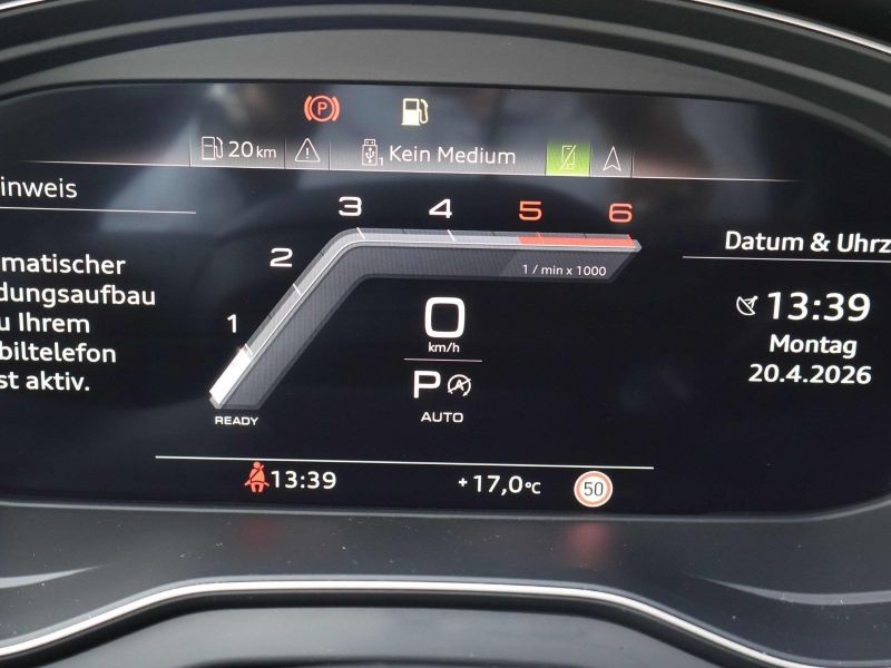 Audi connect (Internetbasierende Dienste), Dachhimmel Stoff, schwarz, Einparkhilfe vorn und hinten, optisch (APS Plus), Fahrassistenz-System: Fernlichtassistent, Fahrassistenz-System: Insassen-Schutzsystem (Audi pre sense basic), Fahrassistenz-System: Verkehrszeichenerkennung, Fahrwerk (adaptive air suspension), Gepäckraum-Abtrennung (Netz), Head-up-Display, Innenausstattung: Dekoreinlagen Akzentteile schwarz glänzend, Interieur-Paket S line, Kombiinstrument digital (virtual cockpit plus), Komfort-Klimaautomatik 3-Zonen, Komfortschlüssel mit sensorgesteuerter Heckklappenentriegelung, Kontur / Ambientebeleuchtungs-Paket (plus), Lendenwirbelstützen vorn, pneumatisch verstellbar, mit Massagefunktion, Matrix Heckleuchten OLED mit Schlusslichtsignatur 1, Multi-Media-Interface MMI Navigation Plus mit MMI Touch, Parkbremse elektro-mechanisch, Pedale und Fußstütze in Edelstahl, Perleffekt-Lackierung, Rückfahrkamera, Rücksitzlehne geteilt/klappbar, verschiebbar (40:20:40), Sitzbezug / PolsterunFahrzeugbeschreibung