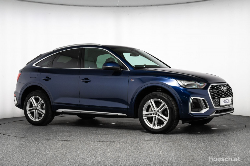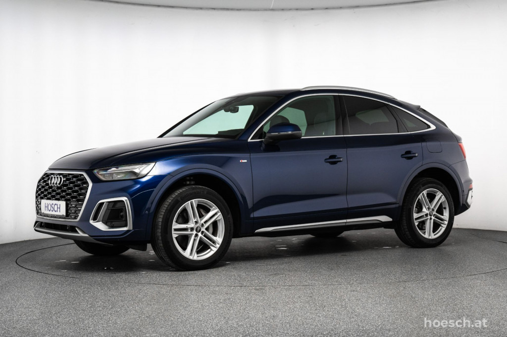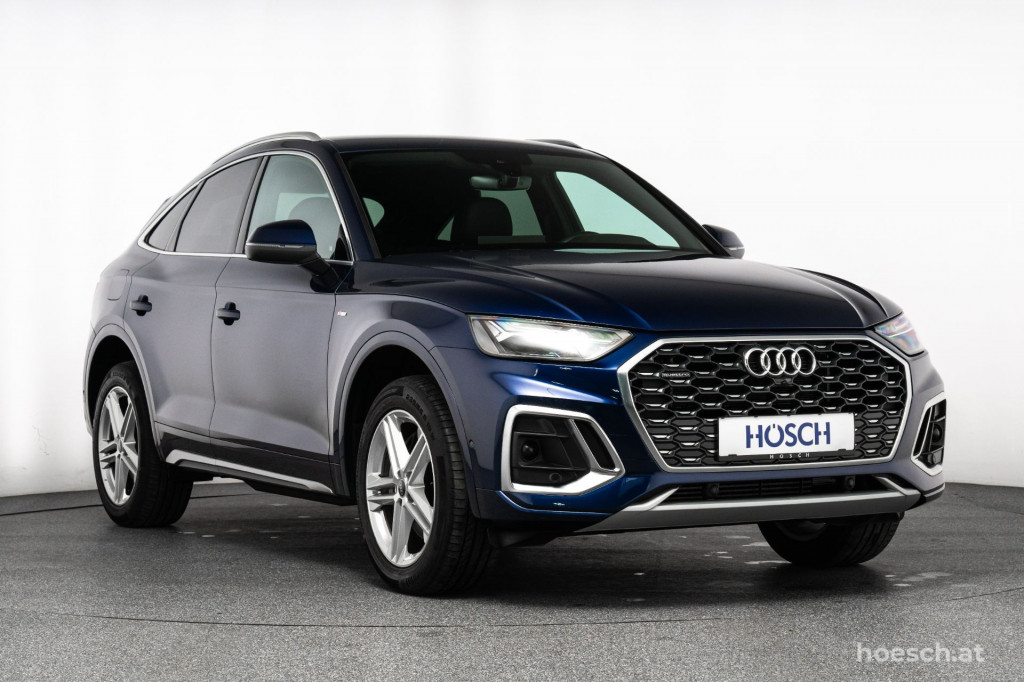Edle Aluminiumakzente am effizienten Sport-SUV, unser Audi Q5 Sportback 50 TFSI e PHEV quattro S Line mit umfangreicher Ausstattung zum HÖSCH-Vorteilspreis.
