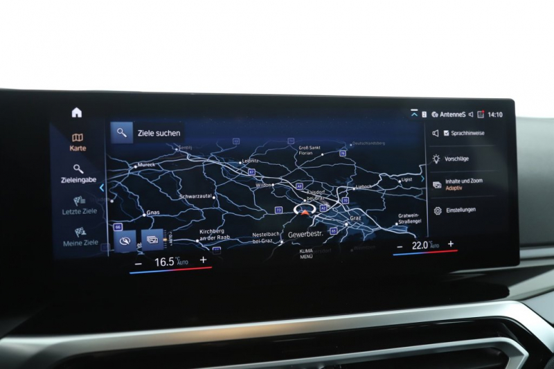 LED-Scheinwerfer, Navigationssystem, Rückfahrkamera, Curved Display, Tot-Winkelassist, Keyless entry, Keyless go, Ledermultifunktionslenkrad, Tempomat, Lichtautomatik, Aussenspiegel el. anklappbar, el. Hecklappe, Abstandstempomat, Schaltwippen, auto. Innenspiegel, Auto-Hold-Funktion, Dynamik-Schalter, USB-Schnittstelle, Touchdisplay, 2-Zonen-Klimaautomatik, Parkassist, Rückfahrassist, Sitzheizung, Ambientebeleuchtung, 17 Zoll Alufelgen, Met.Lack, Leasingfähig
