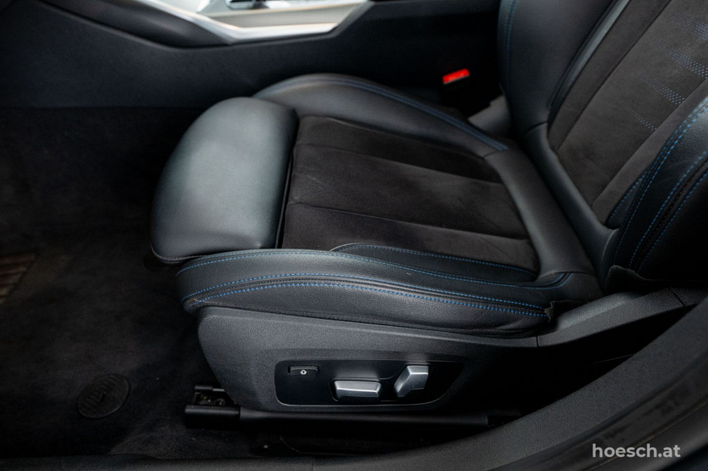 • Polsterung in Leder/Alcantara Kombination schwarz mit Kontrastnaht in blau