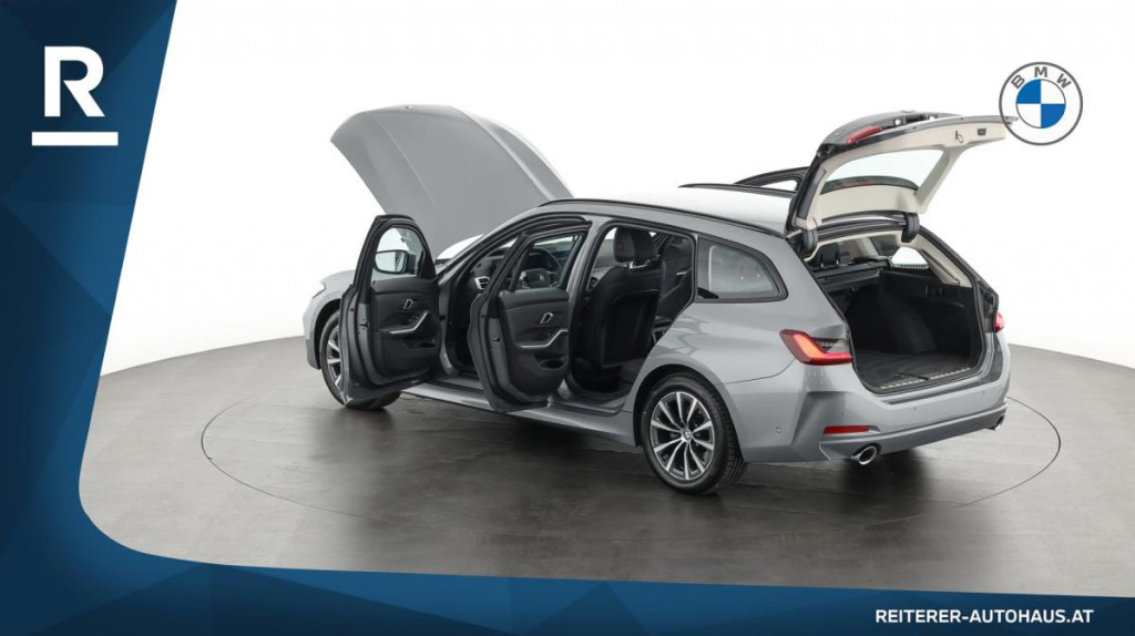 BMW Premium Selection von Autohaus REITERER!Der BMW 320d xDrive Touring überzeugt durch seinen kraftvollen und zugleich sparsamen 2,0 l TwinPower Turbo Dieselmotor mit 140 kW (190 PS), kombiniert mit dem intelligenten Allradantrieb xDrive und einem Sport-Automatikgetriebe. In edlem Skyscraper Grau metallic präsentiert er sich als stilvoller Kombi mit markantem Design, hohem Fahrkomfort und moderner Technik für jeden Tag.