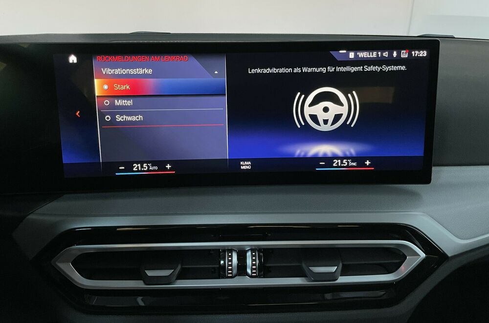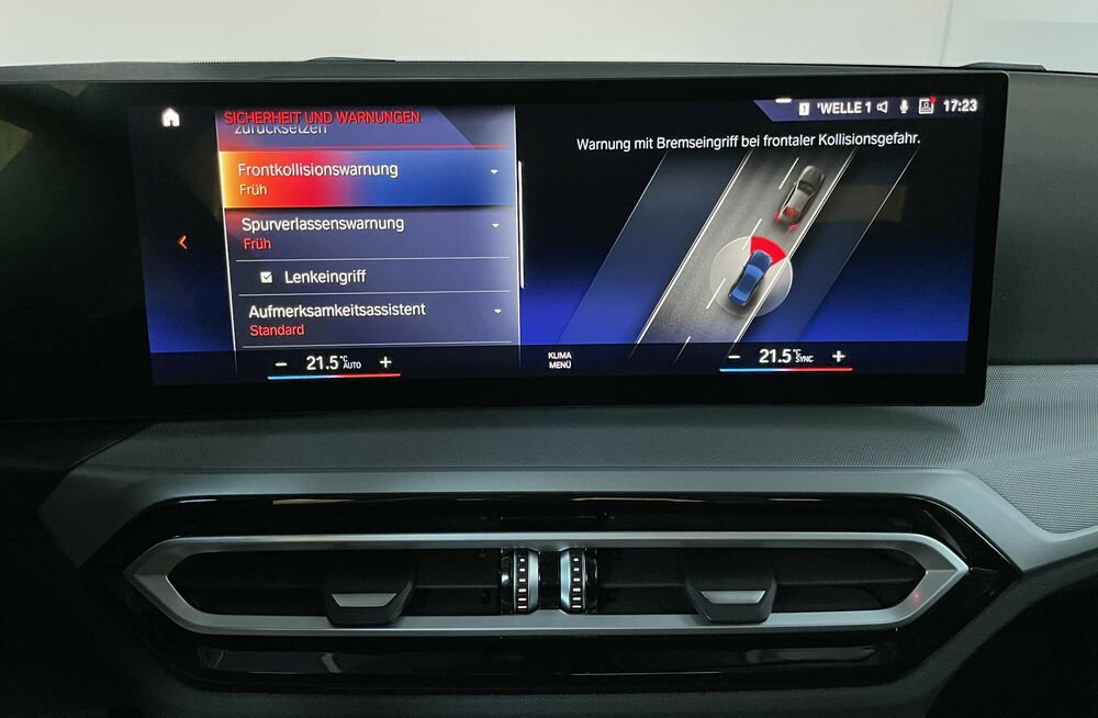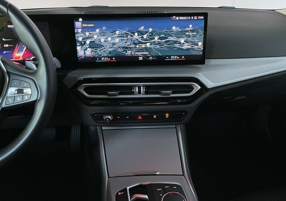 Zum Verkauf steht ein BMW 318 LCI aus dem Jahr 2023. Das Facelift-Modell der 3er-Reihe überzeugt mit modernem Design, effizienter Motorisierung und hochwertiger Ausstattung. Besonders hervorzuheben ist das große BMW Curved Display, das Cockpit und Infotainment in einer modernen, leicht zum Fahrer geneigten Bildschirmfläche vereint und für eine intuitive sowie elegante Bedienung sorgt. Zusammen mit den LED-Scheinwerfern unterstreicht es den modernen Charakter des Fahrzeugs. Der BMW bietet zudem zahlreiche Komfortfeatures wie den Komfortzugang, mit dem sich das Fahrzeug schlüssellos öffnen und starten lässt. Dank der Anhängerkupplung eignet sich das Auto auch ideal für Anhänger oder Fahrradträger und ist somit besonders praktisch im Alltag oder für Reisen.Sonderausstattungen: