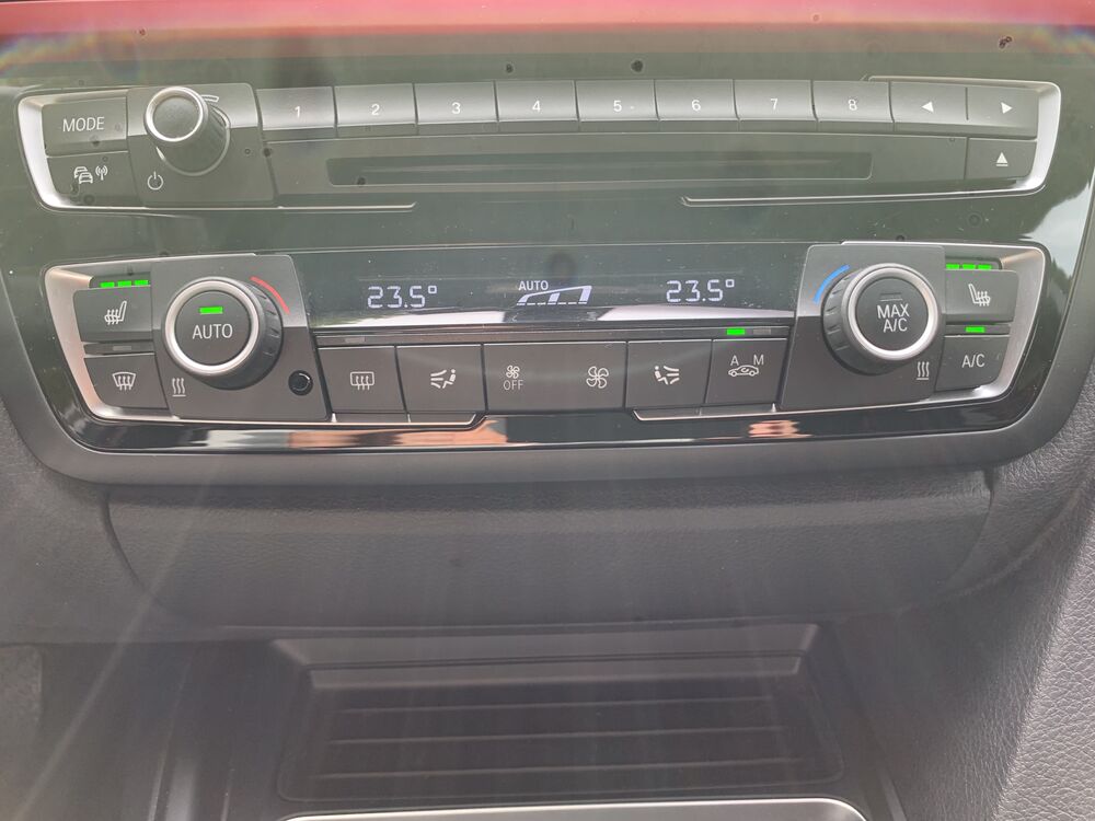 Auspuffanlage (1-Rohr-Anlage) mit Blende, Automatik-Sicherheitsgurte vorn und hinten, Außenspiegel Wagenfarbe, Leuchtweitenregelung (automatisch), Scheinwerfer-Reinigungsanlage (SRA), Blinkleuchten Weiß, Außentemperaturanzeige, Bremsenergierückgewinnung (Rekuperationssystem), Check-Control-System, Dach Wagenfarbe, Drehzahlmesser, Dynamische Bremsleuchte, Erste Hilfe-Kasten / Verbandkasten, Frontscheibe mit Bandfilter oben, Fußmatten Velours, Getränkehalter, Lenksäule (Lenkrad) mechan. verstellbar, Licht-Paket, Fußraumbeleuchtung vorn, Ausstiegsleuchten in Türverkleidung unten, Leseleuchten vorn, Leseleuchten hinten, Gepäckraumbeleuchtung, Mittelarmlehne hinten, Fahrassistenz-System: Speed-Limit-Anzeige, Nebelschlussleuchte(n), Personalisierungssystem (Personal Profile), Reifensystem Run-Flat (mit Notlaufeigenschaften), Schadstoffarm nach Abgasnorm Euro 6, Schaltpunktanzeige, Scheibenwaschdüsen und Außenspiegel beheizt, Sitzausstattung: 5-Sitzer, Sitzbezug / Polsterung: Stoff Move, Sitze vorn mechanisch verstellbar, Sport Line, Steckdose (12V-Anschluß) zusätzlich, Stoßfänger Wagenfarbe, Warndreieck, Dachhimmel Anthrazit (BMW Individual), Innenausstattung: Interieurleisten schwarz hochglänzend mit Akzentleiste, Instrumentenkombination (erweiterter Umfang), Raucher-Paket, Sonnenschutzverglasung (hinten abgedunkelt), Österreich-Paket Plus, Ablage-Paket, Park-Distance-Control (PDC) vorn und hinten, Mittelarmlehne vorn verstellbar, Durchladeeinrichtung (Mittelarmlehne hinten), Variable SportlenkungFahrzeugbeschreibung