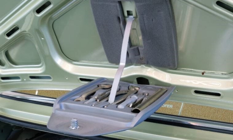 Im Kofferraum findet sich, natürlich vollständig, das originale Bordwerkzeug. Das Fahrzeug ist zu 100% original (die originalen Stahlfelgen sind ebenfalls dabei) und nachlackierungsfrei.