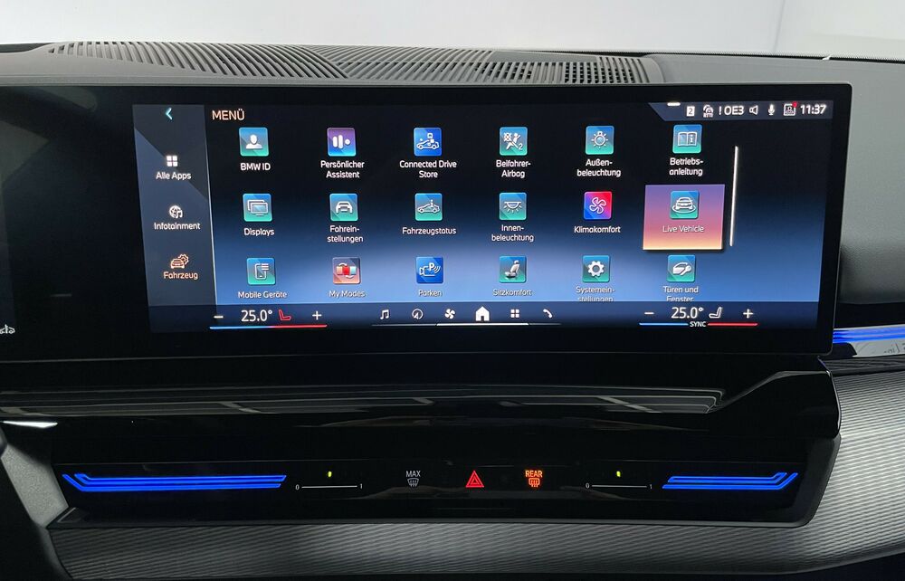 Anhänger-Stabilisierungs-Programm (ASL), Ausstattungs-Paket: Connected Professional, Außenausstattung: Shadow-Line Hochglanz, Außenspiegel-Paket (erweitert), Bremsenergierückgewinnung (Rekuperationssystem), Dachhimmel Anthrazit, Erste Hilfe-Kasten / Verbandkasten, Fahrassistenz-System: Post-Crash-System (PC-iBrake), Fußmatten Velours, Induktionsladeschale für Smartphone (Wireless Charging), Innenausstattung: Interieurleisten M Dunkel-Silber / Aluminium Rhombicle, Lenksäule (Lenkrad) mechan. verstellbar, M Sport, Personalisierungssystem (BMW My Modes), Personalisierungssystem (Personal eSIM), Reifen-Reparaturset (Mobility-Pack), Schadstoffarm nach Abgasnorm Euro 6e, Service-System: Gesetzlicher Notruf, Warndreieck, Comfort-Paket, Fahrassistenz-System: Driving Assistant Professional, Fahrassistenz-System: Spurwechselassistent, Fahrassistenz-System: Falschfahrwarnung, Fahrassistenz-System: Speed-Limit-Anzeige, Fahrassistenz-System: Frontkollisionswarnung, Fahrassistenz-System: Heckaufprall-Vermeidung (Prävention Heckkollision), Fahrassistenz-System: Kreuzungs-Assistent, Fahrassistenz-System: Querverkehrs-Assistent, Fahrassistenz-System: Ausweich-Assistent, Fahrassistenz-System: Ampel-Erkennung, Fahrassistenz-System: Spurwechsel-Warnsystem, Innovations-Paket, Parkassistent-Paket Plus, Fahrassistenz-System: Park-Assistent, Fahrassistenz-System: Einparkhilfe Seite, Service-System: Remote 3D View, Surround-Kamerasystem (Surround View), Fahrassistenz-System: Rückfahr-Assistent, BMW Live Cockpit Professional, Service-System: Augmented Reality für Navigation, Innenraumkamera, Fahrassistenz-System: BMW Natural Interactive, Sitzbezug / Polsterung: Ledernachbildung Veganza perforiert (Schwarz mit Steppung), Sonnenschutzverglasung (hinten abgedunkelt)Fahrzeugbeschreibung