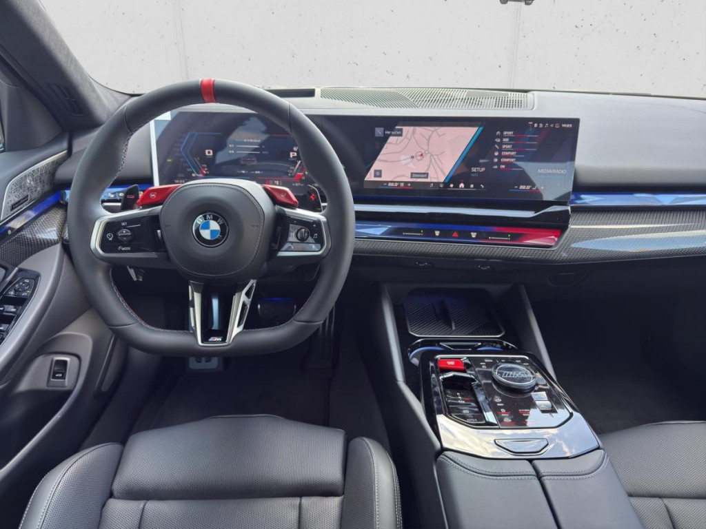 Erleben Sie die BMW M5 Limousine G90 – eine Symbiose aus sportlicher Eleganz, luxuriösem Komfort und modernster Technologie. Jede Fahrt wird zum Erlebnis: das M Sportpaket Pro, das adaptive Fahrwerk und die M Compound-Bremse schenken Ihnen ein unvergleichlich präzises Fahrgefühl, während edle Carbon-Details, klimatisierte Komfortsitze, 4-Zonen-Klimaautomatik und das Bowers & Wilkins Surround Sound System pure Exklusivität vermitteln.
