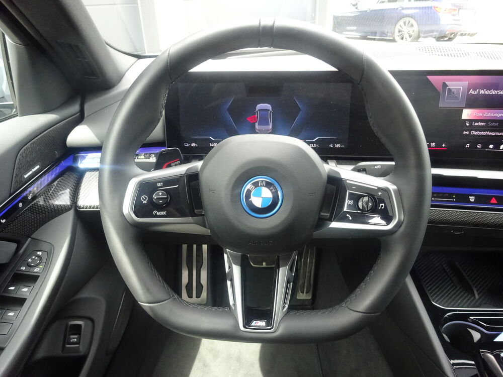 Akustischer Fußgängerschutz (Außensound), Anhänger-Stabilisierungs-Programm (ASL), Außenspiegel-Paket (erweitert), BMW Curved Display, BMW IconicSounds Electric (Soundgenerator), Dachhimmel Anthrazit, Erste Hilfe-Kasten / Verbandkasten, Fußmatten Velours, Induktionsladeschale für Smartphone (Wireless Charging), Ladekabel (5,0 m) mit Typ 2-Stecker (Mode 3, 22 kW), Lenksäule (Lenkrad) mechan. verstellbar, M Sport, Personalisierungssystem (BMW My Modes), Personalisierungssystem (Personal eSIM), Reifen-Reparaturset (Mobility-Pack), Schnellladevorrichtung Flexible Fast Charger (Mode 2), Service-System: Gesetzlicher Notruf, Sitzbezug / Polsterung: M Alcantara / Veganza Kombination (Schwarz), Warndreieck, Adaptives Fahrwerk Professional, Anhänger-Stabilisierungs-Programm (ASL), Comfort-Paket, Fahrassistenz-System: Driving Assistant Professional, Fahrassistenz-System: Spurwechselassistent, Fahrassistenz-System: Falschfahrwarnung, Fahrassistenz-System: Speed-Limit-Anzeige, Geschwindigkeits-Begrenzeranlage (Speed Limit Device), Fahrassistenz-System: Frontkollisionswarnung, Fahrassistenz-System: Heckaufprall-Vermeidung (Prävention Heckkollision), Fahrassistenz-System: Kreuzungs-Assistent, Fahrassistenz-System: Querverkehrs-Assistent, Fahrassistenz-System: Ausweich-Assistent, Fahrassistenz-System: Ampel-Erkennung, Fahrassistenz-System: Spurwechsel-Warnsystem, Innenausstattung: Interieurleisten M Dunkel-Silber / Carbon Fibre mit Silberfäden hochglänzend, Innovations-Paket, Parkassistent-Paket Plus, Fahrassistenz-System: Park-Assistent, Fahrassistenz-System: Einparkhilfe Seite, Service-System: Remote 3D View, Surround-Kamerasystem (Surround View), Fahrassistenz-System: Rückfahr-Assistent, BMW Live Cockpit Professional, Service-System: Augmented Reality für Navigation, Innenraumkamera, Fahrassistenz-System: BMW Natural Interactive, Exterieurumfänge Iconic Glow, Scheinwerfer BMW Individual Shadow-Line, Außenausstattung: Shadow-Line Hochglanz (erweiterter Umfang), Heckspoiler (M-Technic), Sicherheitsgurte M, Bremsanlage: M Sportbremsen (Bremssättel lackiert, rot hochglänzend), Schnellladefunktion 22 kW (AC), Sonnenschutzverglasung (hinten abgedunkelt), Travel-Paket, Heckklappenbetätigung automatisch, Komfortzugang (Öffnungs- und Schließsystem), Travel und Comfort SystemFahrzeugbeschreibung