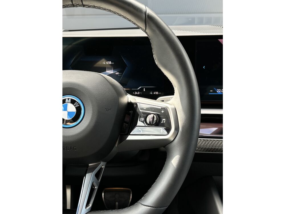 Akustischer Fußgängerschutz (Außensound), Anhänger-Stabilisierungs-Programm (ASL), Außenspiegel-Paket (erweitert), BMW Curved Display, BMW IconicSounds Electric (Soundgenerator), Dachhimmel Anthrazit, Erste Hilfe-Kasten / Verbandkasten, Fußmatten Velours, Induktionsladeschale für Smartphone (Wireless Charging), Ladekabel (5,0 m) mit Typ 2-Stecker (Mode 3, 22 kW), Lenksäule (Lenkrad) mechan. verstellbar, M Sport, Personalisierungssystem (BMW My Modes), Personalisierungssystem (Personal eSIM), Reifen-Reparaturset (Mobility-Pack), Schnellladevorrichtung Flexible Fast Charger (Mode 2), Service-System: Gesetzlicher Notruf, Warndreieck, Adaptives Fahrwerk Professional, Comfort-Paket, Innenausstattung: Interieurleisten M Dunkel-Silber / Carbon Fibre mit Silberfäden hochglänzend, Innovations-Paket, Parkassistent-Paket Plus, Fahrassistenz-System: Park-Assistent, Fahrassistenz-System: Einparkhilfe Seite, Service-System: Remote 3D View, Surround-Kamerasystem (Surround View), Fahrassistenz-System: Rückfahr-Assistent, BMW Live Cockpit Professional, Service-System: Augmented Reality für Navigation, Innenraumkamera, Fahrassistenz-System: BMW Natural Interactive, Exterieurumfänge Iconic Glow, Scheinwerfer BMW Individual Shadow-Line, Außenausstattung: Shadow-Line Hochglanz (erweiterter Umfang), Heckspoiler (M-Technic), Sicherheitsgurte M, Bremsanlage: M Sportbremsen (Bremssättel lackiert, rot hochglänzend), Schnellladefunktion 22 kW (AC), Sitzbezug / Polsterung: Ledernachbildung Veganza perforiert (Schwarz mit Steppung), Sonnenschutzverglasung (hinten abgedunkelt), Travel-Paket, Heckklappenbetätigung automatisch, Komfortzugang (Öffnungs- und Schließsystem), Travel und Comfort SystemFahrzeugbeschreibung