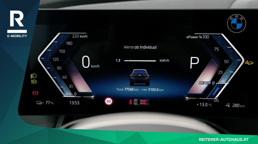 Die leistungsstarke Hochvoltbatterie ermöglicht eine elektrische Reichweite von bis zu ca. 400–425 km (WLTP) und macht den iX sowohl im Alltag als auch auf längeren Strecken zu einem verlässlichen Begleiter. Dank AC-Laden Professional und Schnellladefähigkeit ist jederzeit eine flexible Nutzung gewährleistet.