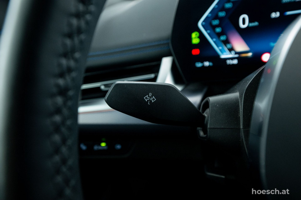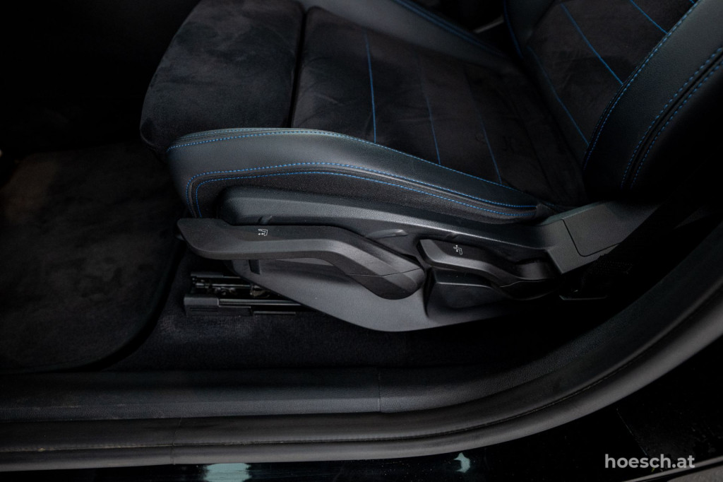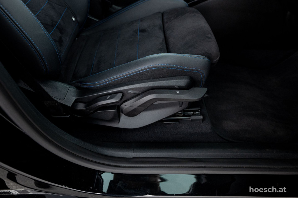 • Polsterung in Leder/Alcantara Kombination schwarz mit Kontrast in blau