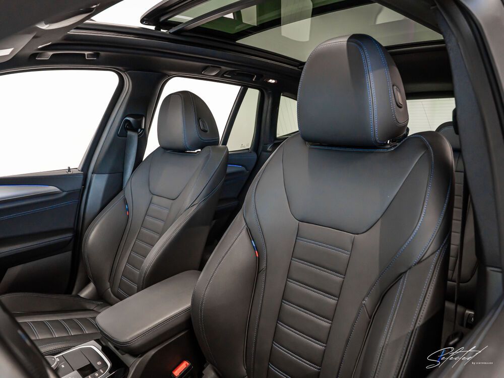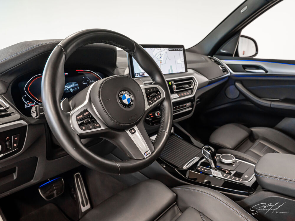 UNSER BMW X3 xDrive30d vereint kraftvolle Dieselperformance mit sportlicher M-DNA und hohem Komfortniveau und ist ideal für Fahrer und Familien, die ein dynamisches, zugleich luxuriöses Premium-SUV schätzen. Das M-Sportpaket mit M-Sportfahrwerk, 19" M Leichtmetallfelgen, Panorama-Glasdach, adaptiven LED-Scheinwerfern, Head-Up Display und Harman Kardon Surround Sound System wird durch Standheizung, Komfortzugang sowie elektrisch verstellbare Sportsitze mit Memory und Sitzheizung perfekt ergänzt.Autohaus Hinterbauer – Kompetenz, Leidenschaft und persönliche Beratung rund um Ihren BMW.