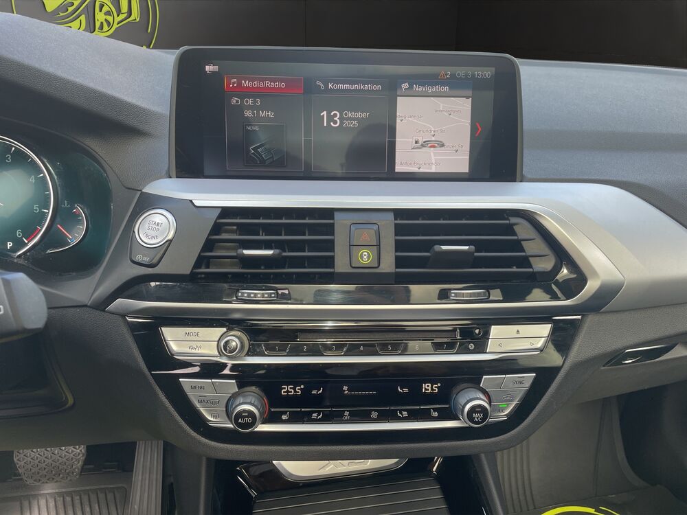 Fahrzeugdaten Modell: BMW X3 xDrive20d Advantage Erstzulassung: 08.08.2019 Antrieb: Allrad (xDrive) Abgasnorm: Euro 6d-TEMP Getriebe: Automatik Sitze: 5 Zustand: sehr gepflegt / Nichtraucherfahrzeug Ausstattung & Highlights Advantage-Paket ConnectedDrive Services inkl. Concierge Services & Real Time Traffic Information (RTTI) BMW Gestiksteuerung Parkassistent-Paket inkl. Park-Assistent Komfortzugang (Keyless Entry & Start) Induktionsladeschale (Wireless Charging) Variable Sportlenkung Lendenwirbelstütze Fahrer & Beifahrer Außenspiegel elektrisch, beheizbar, mit Bordsteinautomatik Spiegel-Paket & Shadow Line Hochglanz Akustikverglasung & Sonnenschutzverglasung hinten Dachhimmel Anthrazit (BMW Individual) Interieurleisten Oxid-Silber, dunkel matt, mit Akzentleiste Stoff/Leder-Kombination Vivus Elektrische Parkbremse Fußmatten Velours, Mittelarmlehne hinten Ablage-Paket, Getränkehalter vorne & hinten NOx-Speicherkatalysator (BMW BluePerformance) Dynamische Bremsleuchte, Check-Control-System, gesetzlicher Notruf Technik & Sicherheit Bremsenergierückgewinnung (Rekuperationssystem) Performance Control Leuchtweitenregelung Nebelschlussleuchte Warndreieck & Verbandkasten Reifen-Reparaturset (Mobility-Pack) Fußgänger-Schutzsystem passiv Besonderheiten Österreich-Paket Nichtraucher-Paket Servicehistorie vorhanden Sofort verfügbar