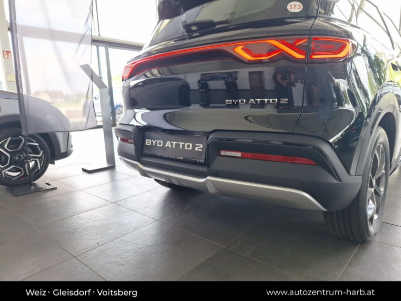Atto 2 Boost, ATTO 2 Boost, Dachreling aus Aluminium, LED Tagfahrlicht,LED Scheinwerfer&Heckleuchten, Follow Me Home-Funktion, Beheizte und elektrisch einklappbare Außenspiegel, Multifunktionslenkrad, veganes Leder, Sonnenblende mit beleuchtetem Kosmetikspiegel, Geteilt klappbare Rücksitze - 40:60, Einfarbige Ambientebeleuchtung (Türgriff), 4x One Touch-Fensterheber mit Einklemmschutz, PM2,5 Luftfilter, DAB & FM Radio, Elektrisch drehbarer Touchscreen (12.8 Zoll), Audiosystem mit 8 Lautsprechern, Hi,BYD! Sprachsteuerung, Internet der Fahrzeuge (4G), Cloud Service, Fahrerairbag, Beifahrerairbag, Airbag vorne (Seite), Sicherheitsgurt mit Gurtstraffer & Kraftbegr., Toter Winkel-Assistent (BSD), Elektronisches Stabilitätsprogramm (ESP), Integrated Power Brake (IPB), Antriebsschlupfregelung (ASR), Elektronischer Bremskraftverteiler, Comfort Stop (CST), Bergabfahrhilfe, Hill Descent Control (HDC), Elektrische Parkbremse (EPB), Auto-Hold-Funktion (AVH), Abstandsregeltempomat(ACC)&Intelligent Cruise(ICC), Intelligente Tempokontrolle (ISLI & ISLC), Verkehrszeichenerkennung, Antiblockiersystem (ABS), Automatische Notbremsung, Spurhalteassistent, Notfall-Spurhalteassistent (ELK), Radar-Parksensoren vorne, Radar-Parksensoren hinten, Reifendruck-Kontrollsystem, Kindersicherung (mechanisch), Notrufsystem, Vehicle-To-Load (V2L), Keyless Entry & Keyless Start, Wärmepumpe, 11 kW On-Board-Charger, Regensensor, Kabelloses Laden für Smartphones (15W), 2x USB Ladeanschluss vorne, Rear Collision Warning (RCW), Forward Collison Warning (FCW), Panoramasonnendach mit Sonnenblende, 17 Zoll Bi-Color Leichtmetallfelgen, Sitze aus veganem Leder, Beifahrersitz mit 4-Wege-Sitzverstellung, Sitzheizung vorne, LED Leselicht vorne & hinten, Front CrossTraffic Alert, Front CrossTraffic Brake, Türöffnungswarnung, Metallic Lackierung, 360 Grad Kamera, Fahrer-Müdigkeitserkennung, 4 Fahrmodi, Fahrersitz mit 6-Wege-Sitzverstellung, TFT LCD Informationsdisplay, Android Auto &Weitere Angebote: