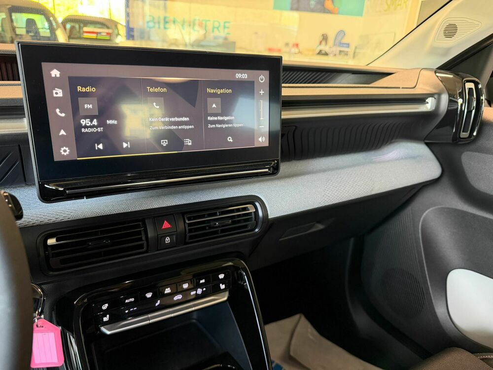 6 Lautsprecher, Akustischer Fußgängerschutz (Außensound), Audiobedienung am Lenkrad, Fahrassistenz-System: Notruf- und Assistance-System (CITROEN Connect), Mobile Online Dienste MirrorLink, Navigationssystem: NaviDrive 3D, Außenspiegel mit Abdeckkappen schwarz, Bremsenergierückgewinnung, Comfort Federung (Citroen Advanced), Elektromotor 83 kW, Elektromotor 83 kW (cont. 53 kW), Heckscheibe heizbar, Heckscheibenwischer, HV-Batterie 54 kWh (Lithium-Ionen), Induktionsladeschale für Smartphone (Wireless Charging), Innenausstattung: Ambiente Metropolitan Grey, Sitzbezug / Polsterung: Stoff/Kunstleder, Citroen Advanced Comfort Sitze, Koffer-/Laderaumboden variabel (Moduboard), Kopfstützen hinten (3-fach), Kopfstützen vorn verstellbar, Ladekabel mit Typ 2-Stecker (Mode 3), Ladevorrichtung On-Board-Lader 11 kW, Lenksäule (Lenkrad) mech. höhen-/längsverstellbar, Parkbremse elektrisch, Radstand 2670 mm, Sicherheits-Paket, Elektr. Bremskraftverteilung, Frontkamera, Fahrassistenz-System: Spurassistent (AFIL), Antischlupfregelung (ASR), Elektron. Stabilitäts-Programm (ESP), Fahrassistenz-System: Berganfahrhilfe, Sicherheitsgurte hinten, Sitz vorn links höhenverstellbar, Sonderlackierung Polar-Weiß, Steckdose (12V-Anschluß) in Mittelkonsole vorn, Unterfahrschutz, Warnanlage für Sicherheitsgurte, Außenausstattung: Farbclips in Weiß, Dachfarbe Perla-Nera-Schwarz, Reifen-ReparaturkitWeitere Angebote:
