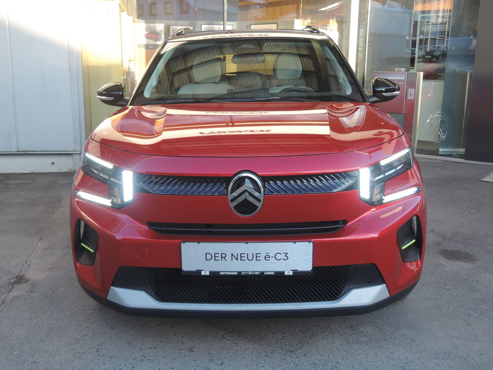 6 Lautsprecher, Akustischer Fußgängerschutz (Außensound), Audiobedienung am Lenkrad, Mobile Online Dienste MirrorLink, Navigationssystem: NaviDrive 3D, Außenspiegel schwarz, Bremsenergierückgewinnung, Citroen Advanced Comfort Sitze, Comfort Federung (Citroen Advanced), Connecting-Box, Elektr. Bremskraftverteilung, Frontkamera, Gepäck-/Laderaumleuchte, Heckscheibenwischer, HV-Batterie 44 kWh (Lithium-Eisen-Phosphat), Induktionsladeschale für Smartphone (Wireless Charging), Innenausstattung: Ambiente Metropolitan Grey, Sitzbezug / Polsterung: Stoff/Kunstleder, Kindersicherung, manuell, Kopfstützen hinten (3-fach), Kopfstützen vorn verstellbar, Ladekabel mit Typ 2-Stecker (Mode 3), Mittelkonsole mit Ablagefach, Parkbremse elektrisch, Sicherheitsgurte hinten, Sitz vorn links höhenverstellbar, Steckdose (12V-Anschluß) in Mittelkonsole vorn, Warnanlage für Sicherheitsgurte, Zentralverriegelung inkl. Türverriegelung automatisch, Außenausstattung: Farbclips in Gelb, Dachfarbe Perla-Nera-Schwarz, Ladevorrichtung On-Board-Lader 11 kW, Reifen-ReparaturkitFahrzeugbeschreibung