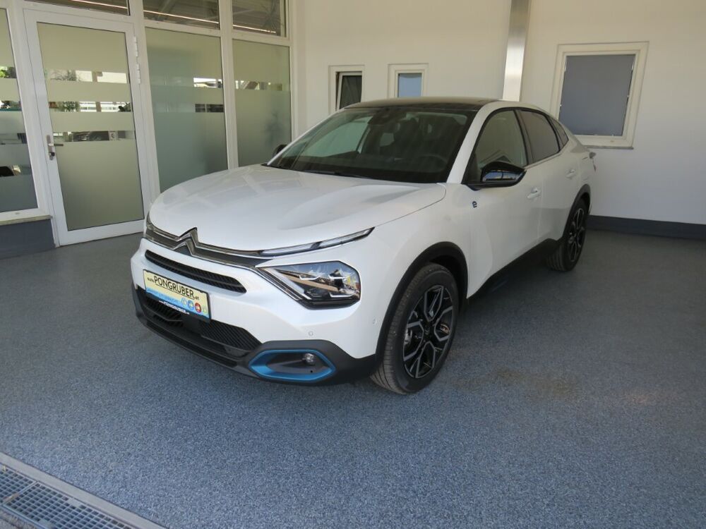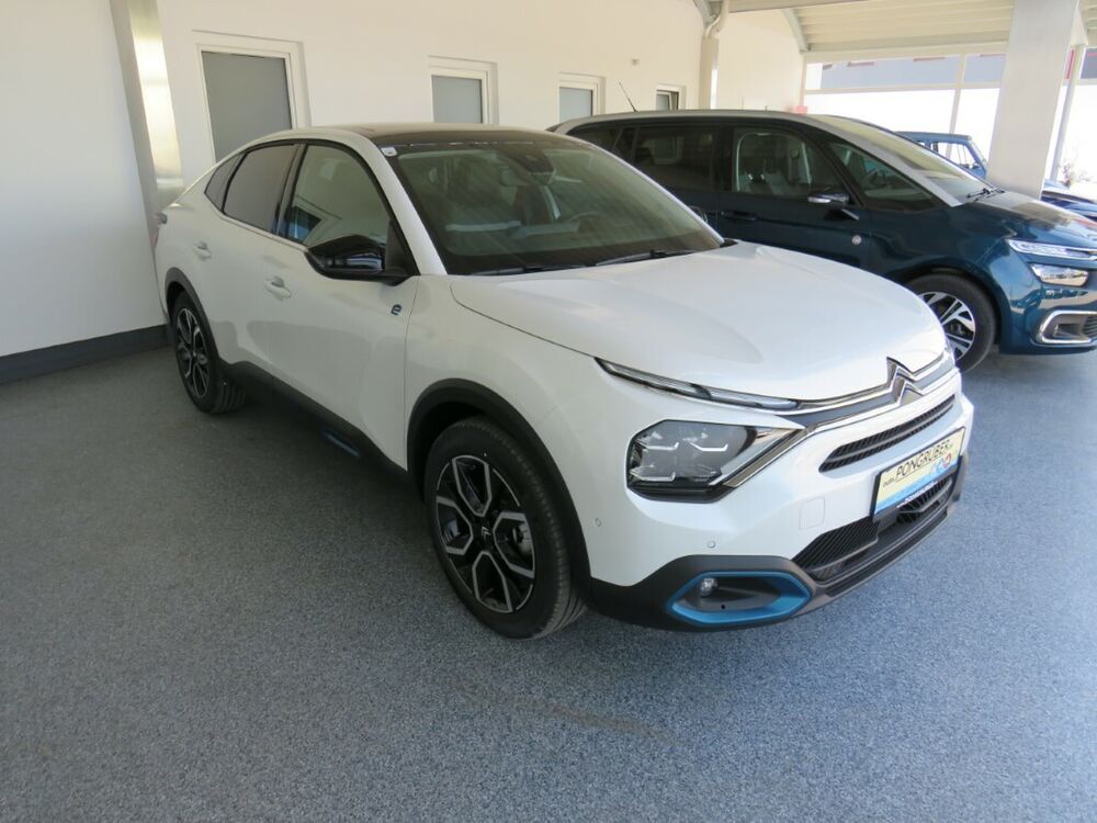 Ablagetasche an Vordersitzlehnen, Akustischer Fußgängerschutz (Außensound), Mobile Online Dienste MirrorLink, Navigationssystem: NaviDrive 3D, 6 Lautsprecher, Außenspiegel mit Abdeckkappen schwarz, Bremsenergierückgewinnung, Citroen Advanced Comfort Sitze, Citroen Smart Pad Support, Color-Paket Anodised-Blau, Comfort Federung (Citroen Advanced), Drive-Assist-Paket, Sicherheits-Paket plus, Fahrassistenz-System: Notruf- und Assistance-System (CITROEN Connect), Fahrassistenz-System: Kollisionswarnsystem, Frontkamera, Fahrassistenz-System: aktiver Spurassistent (Lenkunterstützung), Drive-Assist-Paket plus, Elektr. Bremskraftverteilung, Fahrassistenz-System: Highway Drive Assist, Frontscheibe Verbundglas, Fußmatten, Innenleuchte LED hinten, Innenleuchte LED vorn, Kindersicherung, manuell, Koffer-/Laderaumboden variabel (Moduboard), Ladekabel mit Typ 2-Stecker (Mode 2), Ladevorrichtung On-Board-Lader 11 kW, Lendenwirbelstütze Sitz vorn links, verstellbar, Lenksäule (Lenkrad) mech. höhen-/längsverstellbar, Mittelkonsole mit Ablagefach, Parkbremse elektrisch, Reifen-Reparaturkit, Einschaltautomatik für Fahrlicht, Seitenschutzflächen stoßabsorbierend, Blau (Airbump), Sicherheitsgurte hinten, Sitzbezug / Polsterung: Alcantara / Kunstleder, Sitze vorn höhenverstellbar, Sitz vorn links höhenverstellbar, Steckdose (12V-Anschluß) in Mittelkonsole vorn, Citroen Smart Pad Apple, Induktionsladeschale für Smartphone (Wireless Charging), Sonderlackierung Perlmutt-WeißFahrzeugbeschreibung