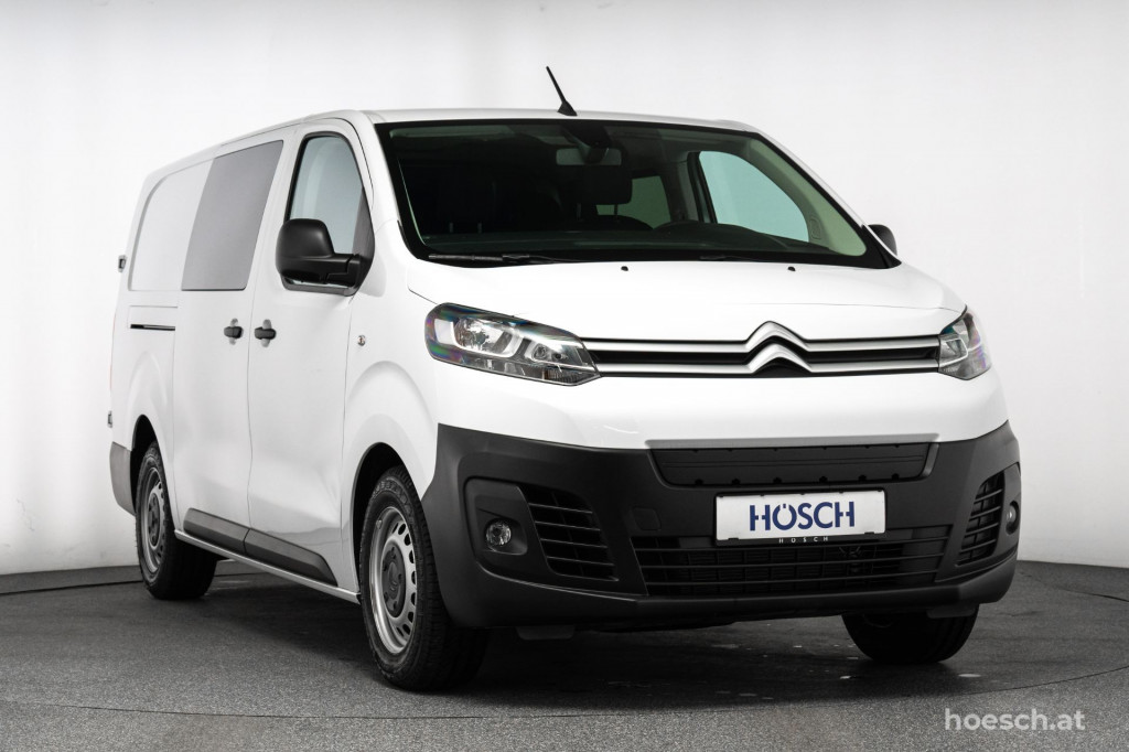 Praktischer Kleintransporter mit 6-Sitzplätzen in neuwertigem Zustand Citroen Jumpy Kastenwagen L3 Doppelkabine 50kWh mit umfangreicher Ausstattung zum HÖSCH-Vorteilspreis.