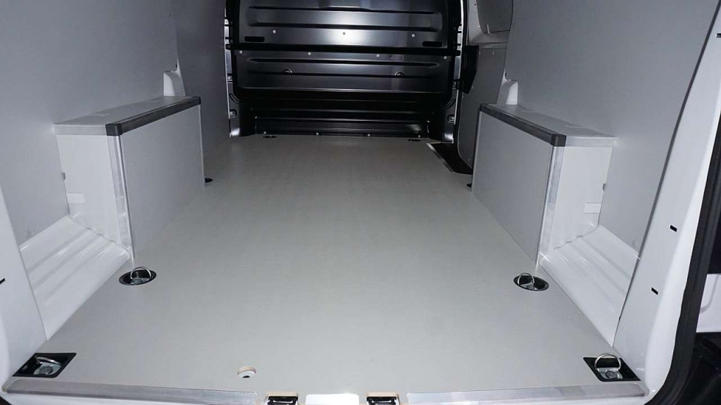 • Holzplatte beschichtet am Boden im Laderaum mit Anti-Rutsch-Funktion + Seitenverkleidung + 1.027,- €