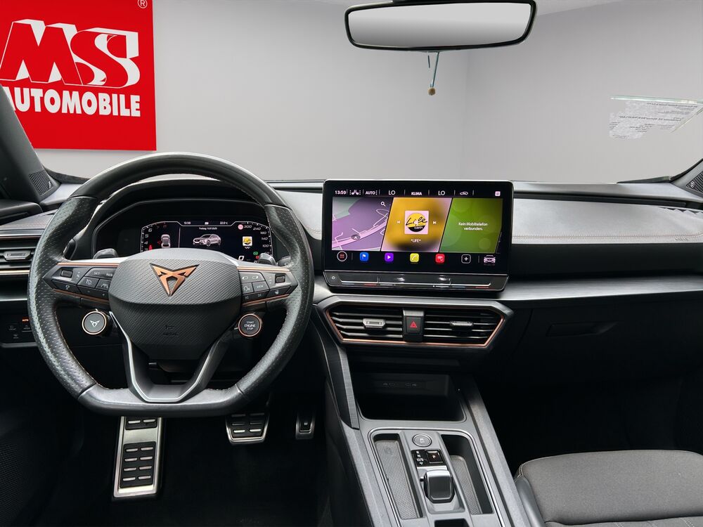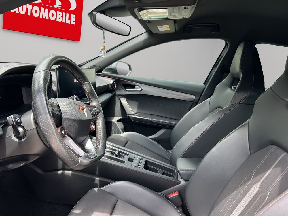 Ablagetasche an Vordersitzlehnen, Dachhimmel schwarz, Doppeltonhorn, Einstiegsleisten (Aluminium) vorn, beleuchtet, Fahrassistenz-Paket L, Fahrassistenz-Paket: Travel Assist, Fensterzierleisten schwarz hochglänzend, Gepäckraumabdeckung / Rollo, Induktionsladeschale für Smartphone, Laderaumboden variabel und herausnehmbar, Lendenwirbelstütze Sitz vorn links, verstellbar, Lendenwirbelstütze Sitz vorn rechts, verstellbar, Leseleuchten hinten LED, Leseleuchten vorn LED, Leuchtweitenregelung automatisch, Länder-AV Österreich, Mittelarmlehne hinten, Mittelkonsole vorn mit Mittelarmlehne, Becherhalter, Ablagebox und Luftausströmer hinten, Mobile Online Dienste Cupra Connect, Parkbremse elektrisch, Pedale Aluminium-Design, Radstand 2680 mm, Reserverad als Notrad, Schadstoffarm nach Abgasnorm Euro 6d, Sicherheitsgurte vorn höhenverstellbar, Sitz vorn links höhenverstellbar, Sitz vorn rechts höhenverstellbar, Sitzbezug / Polsterung: Stoff, Sonnenblende links mit Spiegel (beleuchtet), Sonnenblende rechts mit Spiegel (beleuchtet), Steckdose (12V-Anschluß) vorn, Warnanlage für Sicherheitsgurt-System, 10 Lautsprecher, Bremsanlage: Brembo High Performance vorn, Reifen-ReparatursetFahrzeugbeschreibung
