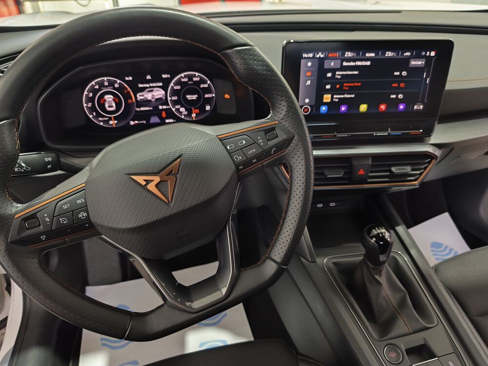 • Fahrerassistenzspaket: ACC. Cupra Drive Profile, Fernlichtassistent, Müdigkeitserkennung, Spurhalteassistent, Umfeldbeobachtungssystem mit City Notbremsfunktion, Berganfahrhilfe