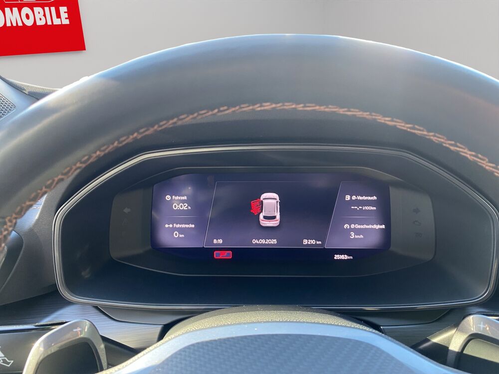 6 Lautsprecher, Ablagetasche an Vordersitzlehnen, Doppeltonhorn, Einstiegsleisten (Aluminium) vorn, beleuchtet, Fensterzierleisten schwarz hochglänzend, Gepäckraumabdeckung / Rollo, Laderaumboden variabel und herausnehmbar, Lendenwirbelstütze Sitz vorn links, verstellbar, Lendenwirbelstütze Sitz vorn rechts, verstellbar, Leseleuchten hinten LED, Leseleuchten vorn LED, Leuchtweitenregelung automatisch, Länder-AV Österreich, Mittelarmlehne hinten, Mittelkonsole vorn mit Mittelarmlehne, Becherhalter, Ablagebox und Luftausströmer hinten, Mobile Online Dienste Cupra Connect, Parkbremse elektrisch, Radstand 2680 mm, Reifen-Reparaturset, Schadstoffarm nach Abgasnorm Euro 6d, Sicherheitsgurte vorn höhenverstellbar, Sitz vorn rechts höhenverstellbar, Sitzbezug / Polsterung: Stoff, Sonnenblende links mit Spiegel (beleuchtet), Sonnenblende rechts mit Spiegel (beleuchtet), Steckdose (12V-Anschluß) vorn, Warnanlage für Sicherheitsgurt-System, Anhängerkupplung Vorbereitung, Dachhimmel schwarz, Fahrassistenz-Paket XL, Fahrassistenz-Paket: Stau- und Notfallassistent, Fahrassistenz-Paket: Travel Assist, Fahrassistenz-System: Pre-Crash-System, Induktionsladeschale für SmartphoneFahrzeugbeschreibung