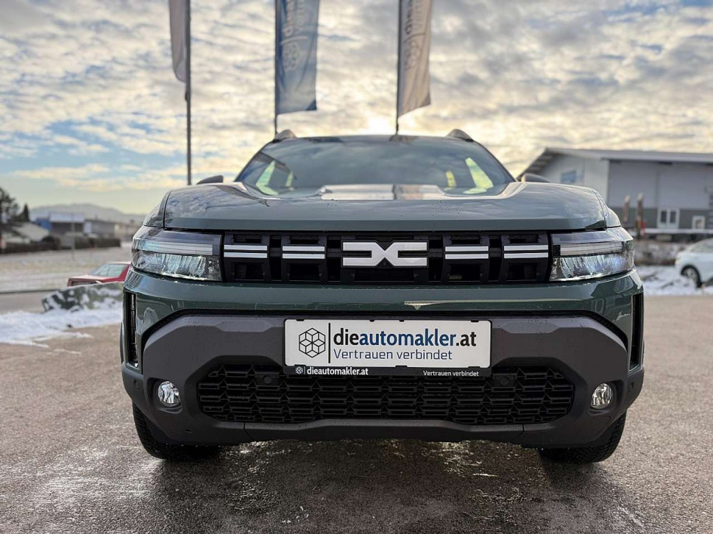 FahrzeugbeschreibungZum Verkauf steht ein Dacia Duster Journey TCe130 4x4 in markantem Grün-Metallic, Erstzulassung 10/2024, mit einer Laufleistung von lediglich 180 km. Der effiziente 1,2-Liter Benzinmotor mit 96 kW (131 PS) in Kombination mit dem Allradantrieb (4×4) bietet souveräne Fahreigenschaften auf unterschiedlichsten Untergründen.