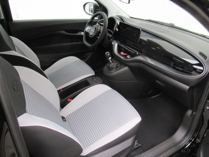DER NEUE FIAT 500 HYBRID TORINO - SONDERMODELL ZUM AKTIONSPREIS!!AUSSTATTUNG: 16 Leichtmetallräder brüniert, Außenspiegelgehäuse in Wagenfarbe, Infinity Voll-LED Scheinwerfer, Seitliche Chrom Plakette mit 500 Torino Schriftzug und der Silhouette (Mole Antonelliana*) von Turin., Spezieller Sitzbezug mit Karo-Muster und eingeprägtem 500 Logo inklusive dem Schriftzug Fabbrica Italiana Automobili Torino, Klimaautomatik, Parksensoren hinten, Tempomat, 10,25 Infotainment mit Apple CarPlay® und Android Auto.