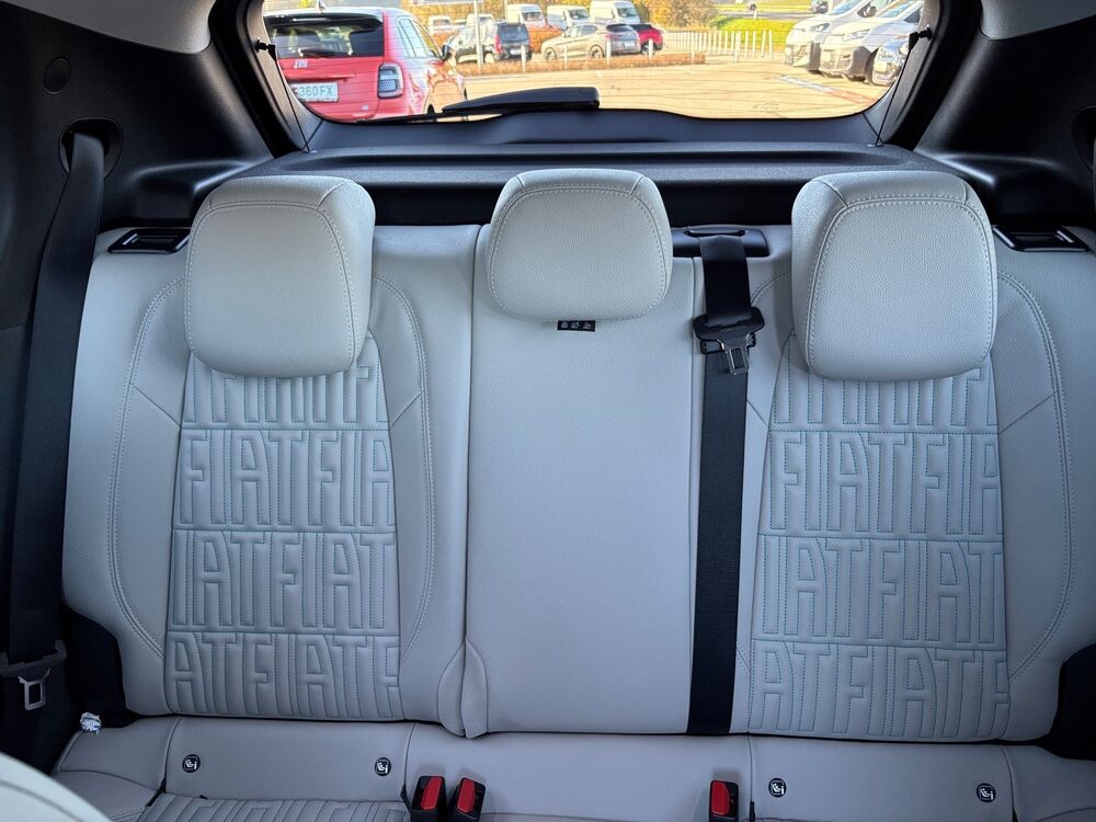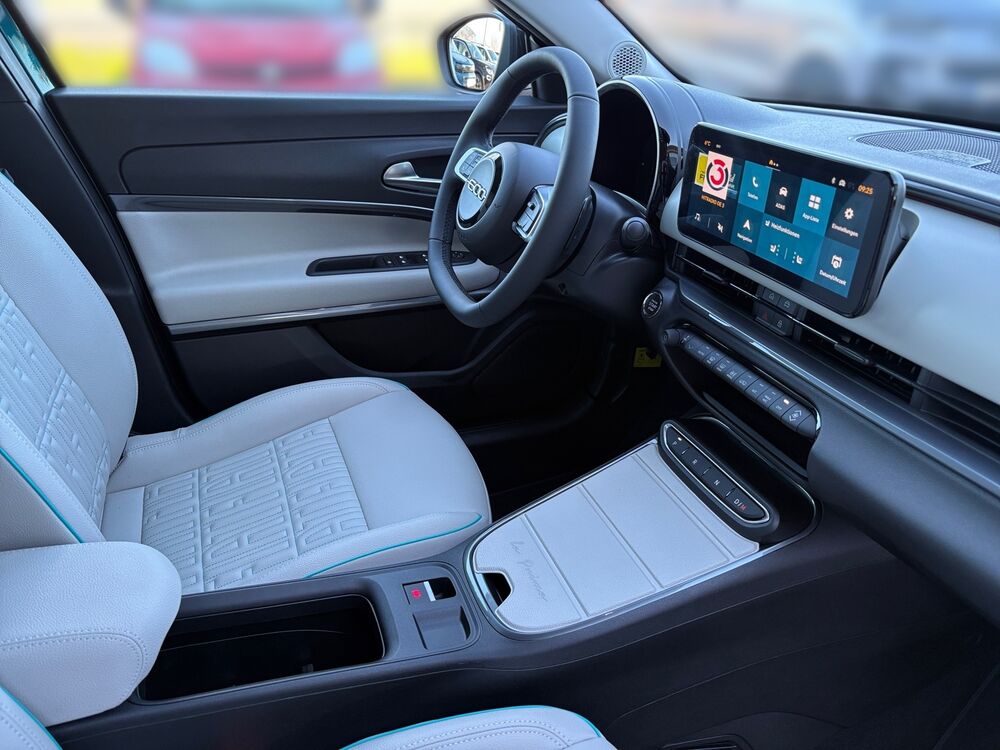 Ablagetasche an Vordersitzlehnen, Auspuffblende verchromt, Außenspiegel schwarz, glänzend, B-Säulen Glanzschwarz (außen), Blinkleuchten LED, Dachhimmel mit LED-Beleuchtung, Exterieurumfänge Chrom, Fahrassistenz-System: Autonomes Fahren Level 2, Frontkamera, Fensterzierleisten verchromt, Frontscheibe heizbar, Scheibenwischer beheizbar, Fußmatten Velours, Induktionsladeschale für Smartphone (Wireless Charging), Mobile Online Dienste UConnect Live, Innenausstattung: Dekoreinlagen Armaturenbrett, weiß, Instrumentenanzeige Farbdisplay, 7 Zoll, Kopfstütze hinten mitte, Kopfstützen hinten, Laderaumboden verstellbar, Mittelkonsole, Blende vorn (La Prima), Parkbremse elektrisch, Radstand Standard, Reifen-Reparaturkit, Schadstoffarm nach Abgasnorm Euro 6e, Sitz vorn links verstellbar (6-fach), Sitzverstellung vorn rechts (4-fach), 6 Lautsprecher, Türgriffe innen verchromt.