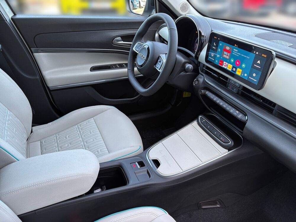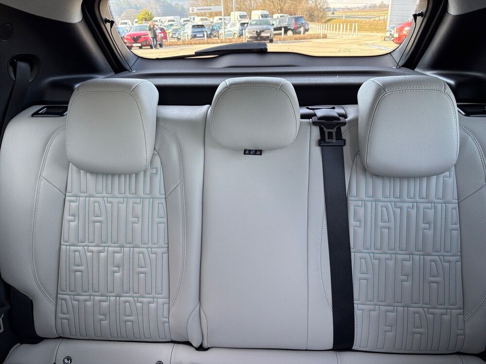 Ablagetasche an Vordersitzlehnen, Auspuffblende verchromt, Außenspiegel schwarz, glänzend, B-Säulen Glanzschwarz (außen), Blinkleuchten LED, Dachhimmel mit LED-Beleuchtung, Exterieurumfänge Chrom, Fahrassistenz-System: Autonomes Fahren Level 2, Frontkamera, Fensterzierleisten verchromt, Frontscheibe heizbar, Scheibenwischer beheizbar, Fußmatten Velours, Induktionsladeschale für Smartphone (Wireless Charging), Mobile Online Dienste UConnect Live, Innenausstattung: Dekoreinlagen Armaturenbrett, weiß, Instrumentenanzeige Farbdisplay, 7 Zoll, Kopfstütze hinten mitte, Kopfstützen hinten, Laderaumboden verstellbar, Mittelkonsole, Blende vorn (La Prima), Parkbremse elektrisch, Radstand Standard, Reifen-Reparaturkit, Schadstoffarm nach Abgasnorm Euro 6e, Sitz vorn links verstellbar (6-fach), Sitzverstellung vorn rechts (4-fach), 6 Lautsprecher, Türgriffe innen verchromt, Sonderlackierung Bicolore, Dach schwarz lackiert.