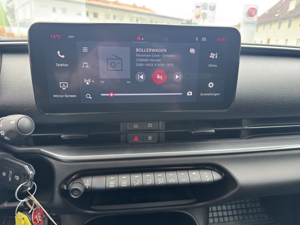Außenspiegel schwarz matt, B-Säulen Glanzschwarz (außen), Mobile Online Dienste UConnect Live, Instrumentenanzeige Farbdisplay, 7 Zoll, Kopfstützen hinten, Parkbremse manuell, Radstand Standard, Reifen-Reparaturkit, Schadstoffarm nach Abgasnorm Euro 6e, Sitz vorn links verstellbar (6-fach), Sitzbezug / Polsterung: Stoff, Sitzverstellung vorn rechts (4-fach), 4 Lautsprecher, Stahlfelgen 7x16, Uni-LackierungFahrzeugbeschreibung