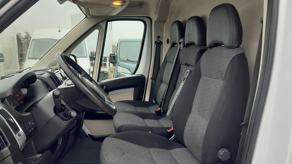 Ablagen: Gepäcknetz an Hecktüren, Blinkleuchten im Außenspiegel integriert, Elektron. Stabilitäts-Programm (ESP), Antriebs-Schlupfregelung (ASR), Fahrassistenz-System: Berganfahr-Assistent, Heckflügeltüren ohne Verglasung, Karosserie/Aufbau: Kasten Hochraum Standard, Kurbelgehäuseentlüftung beheizt, Lenksäule (Lenkrad) verstellbar, Radstand 3450 mm, Reifen-Reparaturkit, Schadstoffarm nach Abgasnorm Euro 6, Seitenschutzleisten, Sitzbezug / Polsterung: Stoff, Sitze im Fahrerhaus: Fahrersitz höhenverstellbar, Armlehne für Fahrersitz, Wassersensor Kraftstoff-Filter, Ablage im Dachhimmel Fahrerhaus, Ablagefach Armaturenbrett (abschließbar), Armaturenbrett Techno, Dokumentenhalter (Smartphone / Tablet), Hinterachse verstärkt (Federung), Reserverad vollwertig (inkl. Ersatzradhalter), Telekamera nach hinten, ÖlstandsensorFahrzeugbeschreibung