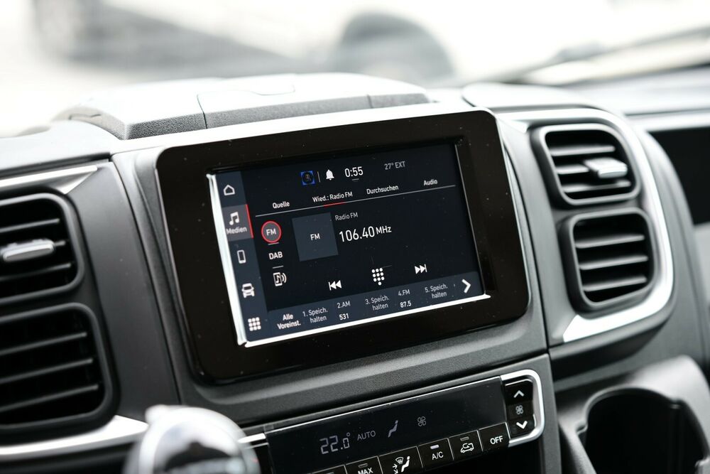5W1 Paket Comfort: Sitzsockelverkleidung, Armaturenbrett Techno, Abschließbares Ablagefach in der Mitte des Armaturenbretts, Standard Sitzbezug Schwarz mit Ducato-Logo auf Kopfstütze (Innenfarbcode 076)