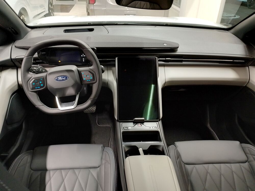 Akustischer Fußgängerschutz (Außensound, AVAS), FordPass Connect inkl. eCall, Außenspiegel schwarz lackiert, Bodenleuchte im Außenspiegel, Fahrassistenz-System: Pre-Collision-System, Fahrassistenz-System: Auffahrwarnsystem, Fahrassistenz-System: Spurfolgeassistent (Lane Following Assist, LFA), Fußmatten Velours, Gepäckraumbeleuchtung, Getränkehalter vorn, HV-Batterie 77 kWh, Induktionsladeschale für mobile Endgeräte, Innenausstattung: Carbon-Dekor, Kombiinstrument Digitalanzeige 5,3 Zoll, Kopfstützen hinten mechan. verstellbar (3 Stück), Ladekabel mit Typ 2-Stecker (Mode 3), Lendenwirbelstütze vorn, Leseleuchte vorn, Leseleuchten im Fond, Leuchtweitenregelung, Mittelarmlehne hinten, Durchladeeinrichtung (Mittelarmlehne hinten), Mittelkonsole (MegaConsole) mit Luftausströmer hinten, Parkbremse elektrisch, Radstand Standard, Reifen vorn/hinten: 235/50 R20 ...Y / 255/45 R20 ...Y, Reifen-Reparaturkit, Sonnenblende links mit Spiegel (beleuchtet), Sonnenblende rechts mit Spiegel (beleuchtet), Steckdose (12V-Anschluß) im Koffer-/Laderaum, Türgriffe außen beleuchtet, Warnanlage für Sicherheitsgurte hinten, Warnanlage für Sicherheitsgurte vorn, Fahrer-Assistenz-Paket, Fahrassistenz-System: aktiver Park-Assistent Plus, Ein- und Auspark-Funktion und teilautomatisierter Fahrzeugführung, Fahrassistenz-System: Fahrspur-Pilot, Dachhimmel Stoff, dunkelFahrzeugbeschreibung