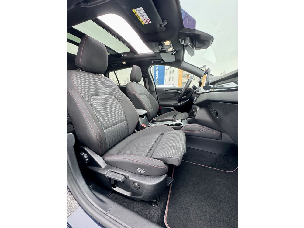 Audiobedienung am Lenkrad, 6 Lautsprecher, Fahrassistenz-System: Sicherheitssystem SYNC mit automatischem Notruf, Ford SYNC 3 mit Navigation, Farbdisplay (8 Zoll), Bodenleuchte im Außenspiegel, Außenspiegel Wagenfarbe, Body-Styling-Paket, Schwellerverbreiterung, Stoßfänger Sport-Ausführung, Stoßfänger hinten Sport-Design mit Diffusor, Chromeinfassung Seitenscheiben, Dachhimmel Stoff, dunkel, Dimmer Instrumentenbeleuchtung, Doppelendrohr Auspuffanlage, Elektr. Bremskraftverteilung (EBD), Fahrassistenz-System: Pre-Collision-System, Fahrassistenz-System: Auffahrwarnsystem, Gepäckraumabdeckung / Rollo, Heckscheibenwischer, Induktionsladeschale für mobile Endgeräte, Intelligent Protection System (IPS), 3-Punkt-Sicherheitsgurt hinten, Gurtstraffer, Intelligenter Geschwindigkeits-Begrenzer, Geschwindigkeits-Begrenzeranlage, Kindersicherung elektrisch, Kombiinstrument Digitalanzeige 12,3 Zoll, Kopfstützen hinten mechan. verstellbar (3 Stück), Kopfstützen vorn 4-fach verstellbar, Laderaumboden verstellbar, Lenksäule (Lenkrad) höhen-/längsverstellbar, Mittelarmlehne hinten, Mittelkonsole Premium, Mittelarmlehne vorn mit Staufach und 12V-Anschluß, Getränkehalter vorn, Parkbremse elektrisch mit Auto-Hold-Funktion, Parkpilotsystem vorn und hinten, Parkpilotsystem hinten, Pedale Aluminium, Schadstoffarm nach Abgasnorm Euro 6d, Schalt-/Wählhebelgriff Leder, Schaltpunktanzeige, Scheinwerfer mit abgedunkelten Hintergrund, Sitz vorn links höhenverstellbar, Lendenwirbelstütze Sitz vorn links, Sitz vorn rechts höhenverstellbar, Lendenwirbelstütze Sitz vorn rechts, Sitzbezug / Polsterung: Stoff, Steckdose (12V-Anschluß) im Koffer-/Laderaum, Stoßfänger Wagenfarbe, Warnanlage für Sicherheitsgurte hinten, Warnanlage für Sicherheitsgurte vorn, Zylinderabschaltung, Anhänger-Stabilisierungs-Programm (TSA), Easy-Parking-Plus-Paket, Fahrassistenz-System: aktiver Park-Assistent Plus, Ein- und Auspark-Funktion und teilautomatisierter Fahrzeugführung, Parkpilotsystem vorn und hinten, Parkpilotsystem hinten, Türkantenschutz / Schutzprofil vorn und hinten (Door Edge Protector), FordPass Connect inkl. eCall, KeyFree-System, Sonnenblende links mit Spiegel (beleuchtet), Sonnenblende rechts mit Spiegel (beleuchtet), Brillenfach in Dachhimmel / Dachkonsole integriert, Reserverad als Notrad, Technologie-Paket 2, Fahrassistenz-System: Falschfahrer-Warnfunktion, Fahrassistenz-System: Verkehrsschildassistent, Fahrassistenz-System: Stauassistent inkl. Stop&Go-Funktion, Fahrassistenz-System: Ausweich-Assistent (Evasive Steer Assistance, ESA), Fahrassistenz-System: Intelligent Drive Assist, teilautomatisierte Fahrassistenz, Fahrassistenz-System: Fahrspur-Pilot, Wendematte Gepäckraum, Winter-Paket, Frontscheibe heizbarFahrzeugbeschreibung
