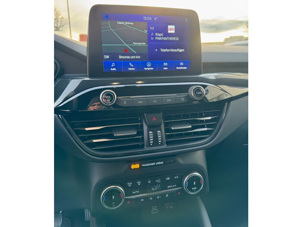 Audiobedienung am Lenkrad, 9 Lautsprecher, Subwoofer, Ford SYNC 3 mit Navigation, Außenspiegel Wagenfarbe, Body-Styling-Paket, Seitenschweller Wagenfarbe, Kühlergrill schwarz, Stoßfänger Sport-Ausführung, Brillenfach in Dachhimmel / Dachkonsole integriert, Dachhimmel Stoff, dunkel, Doppelendrohr Auspuffanlage, Fahrassistenz-System: Pre-Collision-System, Fahrassistenz-System: Auffahrwarnsystem, FordPass Connect inkl. eCall, Fußmatten ST-Design, Gepäckraumabdeckung / Rollo, Gepäckraumbeleuchtung, Induktionsladeschale für mobile Endgeräte, Intelligent Protection System (IPS), 3-Punkt-Sicherheitsgurt hinten, Warnanlage für Sicherheitsgurte vorn, Warnanlage für Sicherheitsgurte hinten, Gurtstraffer, KeyFree-System, Power KeyFree-Startfunktion, Kombiinstrument Digitalanzeige 12,3 Zoll, Kopfstützen vorn 4-fach verstellbar, Lenksäule (Lenkrad) höhen-/längsverstellbar, Mittelkonsole mit Armlehne, Mittelarmlehne vorn mit Staufach und 12V-Anschluß, Getränkehalter vorn, Parkbremse elektrisch mit Auto-Hold-Funktion, Fahrassistenz-System: Berganfahr-Assistent (Hill-Holder), Radstand 2710 mm, Reifen-Reparaturkit, Schadstoffarm nach Abgasnorm Euro 6d, Schalt-/Wählhebelgriff Aluminium, Scheibenrahmen schwarz, Scheinwerfer-Reinigungsanlage (SRA), Scheinwerfer mit Ausschaltverzögerung, Seitenscheiben vorn Verbundglas, Sitz vorn links verstellbar (8-fach), Lendenwirbelstütze Sitz vorn links, Sitz vorn rechts verstellbar (8-fach), Lendenwirbelstütze Sitz vorn rechts, Sitzbezug / Polsterung: Stoff, Sonnenblende links mit Spiegel (beleuchtet), Sonnenblende rechts mit Spiegel (beleuchtet), Allwetter-/ Ganzjahresreifen, Anhängerkupplung Vorbereitung, Anhänger-Stabilisierungs-Programm (TSA), Verglasung hinten abgedunkelt (Privacy Glass), Winter-Paket, Frontscheibe heizbarFahrzeugbeschreibung