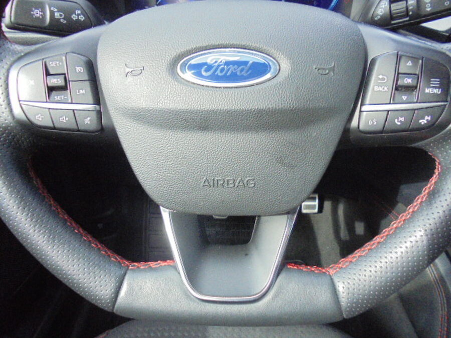 Audiobedienung am Lenkrad, 9 Lautsprecher, Subwoofer, Ford SYNC 3 mit Navigation, Außenspiegel Wagenfarbe, Body-Styling-Paket, Seitenschweller Wagenfarbe, Kühlergrill schwarz, Stoßfänger Sport-Ausführung, Brillenfach in Dachhimmel / Dachkonsole integriert, Dachhimmel Stoff, dunkel, Doppelendrohr Auspuffanlage, Fahrassistenz-System: Pre-Collision-System, Fahrassistenz-System: Auffahrwarnsystem, FordPass Connect inkl. eCall, Fußmatten ST-Design, Gepäckraumabdeckung / Rollo, Gepäckraumbeleuchtung, Induktionsladeschale für mobile Endgeräte, Intelligent Protection System (IPS), 3-Punkt-Sicherheitsgurt hinten, Warnanlage für Sicherheitsgurte vorn, Warnanlage für Sicherheitsgurte hinten, Gurtstraffer, KeyFree-System, Power KeyFree-Startfunktion, Kombiinstrument Digitalanzeige 12,3 Zoll, Kopfstützen vorn 4-fach verstellbar, Lenksäule (Lenkrad) höhen-/längsverstellbar, Mittelkonsole mit Armlehne, Mittelarmlehne vorn mit Staufach und 12V-Anschluß, Getränkehalter vorn, Parkbremse elektrisch mit Auto-Hold-Funktion, Fahrassistenz-System: Berganfahr-Assistent (Hill-Holder), Pedale Aluminium, Radstand 2710 mm, Reifen-Reparaturkit, Schadstoffarm nach Abgasnorm Euro 6d, Schalt-/Wählhebelgriff Aluminium, Scheibenrahmen schwarz, Scheinwerfer mit Ausschaltverzögerung, Seitenscheiben vorn Verbundglas, Sitz vorn links verstellbar (8-fach), Lendenwirbelstütze Sitz vorn links, Sitz vorn rechts verstellbar (8-fach), Lendenwirbelstütze Sitz vorn rechts, Sitzbezug / Polsterung: Stoff, Sonnenblende links mit Spiegel (beleuchtet), Sonnenblende rechts mit Spiegel (beleuchtet), Anhänger-Stabilisierungs-Programm (TSA), Sonderlackierung Frost-Weiß, Technologie-Paket, Scheinwerfer-Reinigungsanlage (SRA), Verglasung hinten abgedunkelt (Privacy Glass), Winter-Paket, Frontscheibe heizbarFahrzeugbeschreibung