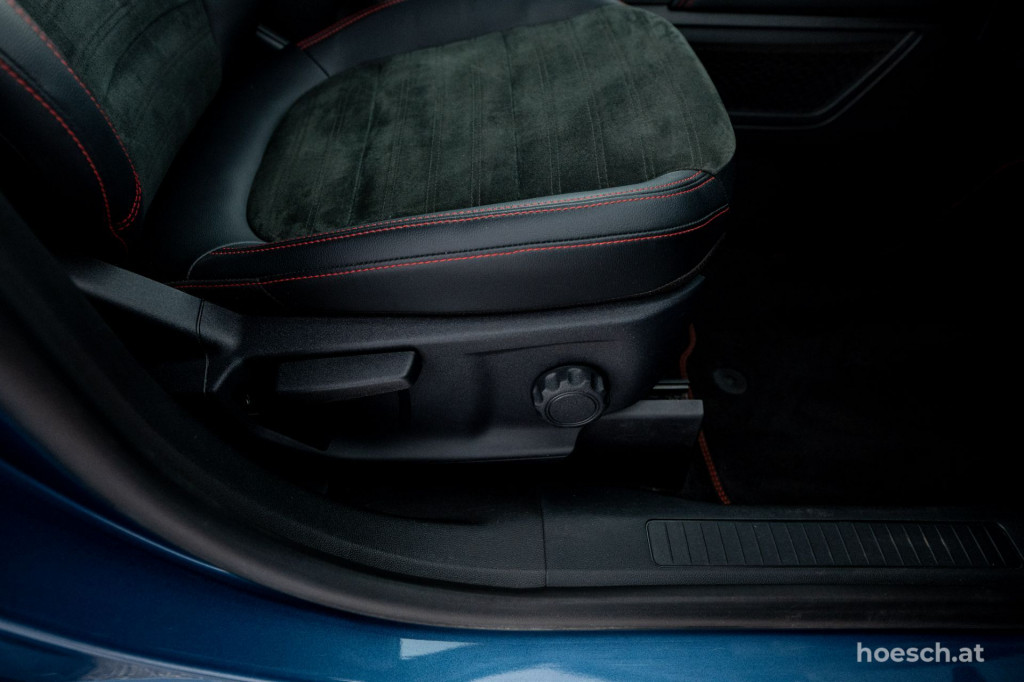 • Premium Polsterung in Leder/Alcantara anthrazit mit Ziernähten in rot