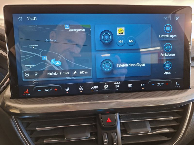 Allwetter-/ Ganzjahresreifen, Anhängerkupplung Vorbereitung, Metallic-Lackierung, Verglasung hinten abgedunkelt (Privacy Glass), Winter-Paket, Dachreling silber, LM-Felgen, Ambiente-Beleuchtung vorn (LED), Audiobedienung am Lenkrad, Audio-Navigationssystem Ford mit AppLink, Außenspiegel elektr. anklappbar, Außenspiegel elektr. verstell- und heizbar, Bordcomputer, Fensterheber elektrisch vorn + hinten mit Komfortschließung, Ford SYNC IV mit Navigation, Geschwindigkeits-Regelanlage (Tempomat), Induktionsladeschale für mobile Endgeräte, Innenspiegel mit Abblendautomatik, Intelligenter Geschwindigkeits-Begrenzer, Isofix-Aufnahmen für Kindersitz, Klimaautomatik 2-Zonen, Kombiinstrument Digitalanzeige 12,3 Zoll, Lendenwirbelstütze Sitz vorn links, Lendenwirbelstütze Sitz vorn rechts, Mittelarmlehne vorn mit Staufach und 12V-Anschluß, Mittelkonsole mit Armlehne, Parkpilotsystem vorn und hinten, Radioempfang digital (DAB), Rückfahrkamera, Rücksitzlehne geteilt, Scheibenwischer mit Regensensor,Fahrzeugbeschreibung