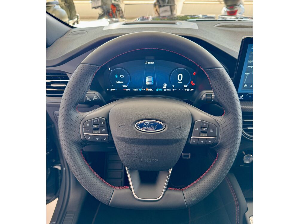 Akustischer Fußgängerschutz (Außensound, AVAS), Audiobedienung am Lenkrad, 9 Lautsprecher, Subwoofer, Ford SYNC 3 mit Navigation, Außenspiegel Wagenfarbe, Body-Styling-Paket, Seitenschweller Wagenfarbe, Kühlergrill schwarz, Stoßfänger Sport-Ausführung, Bremssättel Rot lackiert, Brillenfach in Dachhimmel / Dachkonsole integriert, Dachhimmel Stoff, dunkel, Doppelendrohr Auspuffanlage, Einstiegschienen mit Modell-Schriftzug, Ergonomiesitze vorn, Fahrassistenz-System: Pre-Collision-System, Fahrassistenz-System: Auffahrwarnsystem, FordPass Connect inkl. eCall, Frontscheibe teilweise heizbar, Fußmatten ST-Design, Gepäckraumabdeckung / Rollo, Gepäckraumbeleuchtung, Induktionsladeschale für mobile Endgeräte, Intelligent Protection System (IPS), 3-Punkt-Sicherheitsgurt hinten, Warnanlage für Sicherheitsgurte vorn, Warnanlage für Sicherheitsgurte hinten, Gurtstraffer, KeyFree-System, Power KeyFree-Startfunktion, Kindersicherung elektrisch, Kombiinstrument Digitalanzeige 12,3 Zoll, Kopfstützen vorn 4-fach verstellbar, Ladekabel für öffentliche Ladesäulen, Lendenwirbelstütze Sitz vorn links, Lendenwirbelstütze Sitz vorn rechts, Lenksäule (Lenkrad) höhen-/längsverstellbar, Leuchtweitenregelung, Mittelarmlehne hinten, Mittelkonsole mit Armlehne, Mittelarmlehne vorn mit Staufach und 12V-Anschluß, Getränkehalter vorn, Modellpflege, Off-Road Multi-Meter-Anzeigen inkl. Neigungswinkel, Kompass, Parkbremse elektrisch mit Auto-Hold-Funktion, Fahrassistenz-System: Berganfahr-Assistent (Hill-Holder), Pedale Aluminium, Radstand 2710 mm, Reifen-Reparaturkit, Schadstoffarm nach Abgasnorm Euro 6e, Schalt-/Wählhebelgriff Aluminium, Scheibenrahmen schwarz, Scheinwerfer mit Ausschaltverzögerung, Seitenscheiben vorn Akustikglas, Seitenscheiben vorn Verbundglas, Sonnenblende links mit Spiegel (beleuchtet), Sonnenblende rechts mit Spiegel (beleuchtet), Spezialausführung 2, Türkantenschutz / Schutzprofil vorn und hinten (Door Edge Protector), Anhängerkupplung Vorbereitung, Ladekabel mit Schukostecker, Winter-Paket, Frontscheibe heizbarFahrzeugbeschreibung
